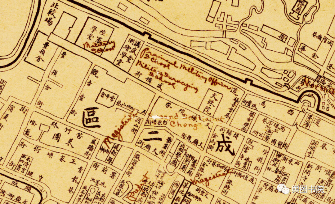 下图,最后贴一张1915年成都街区图,这是成都最早的大比例尺详细街区图,一起欣赏吧~