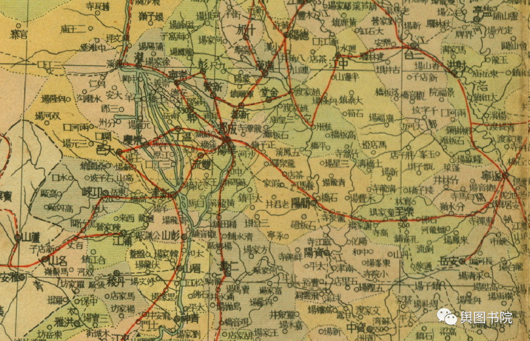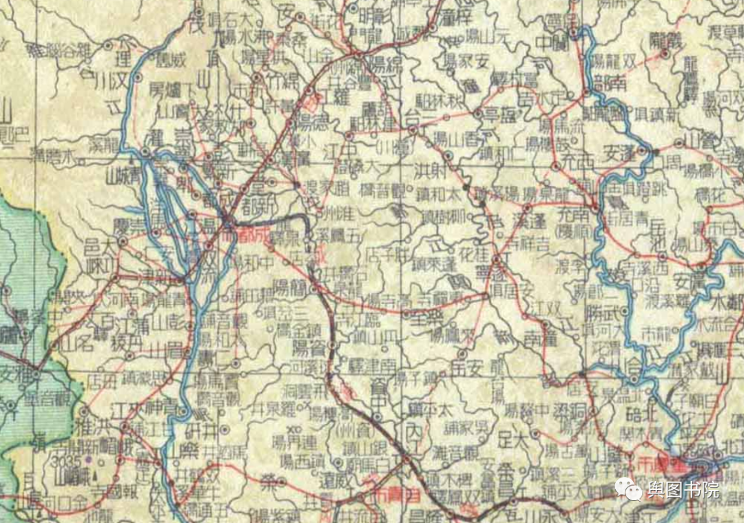 1948年分省地图,成渝铁路已经出现在地图,虽然是在建铁路,但这是成都附近第一次出现铁路印记。