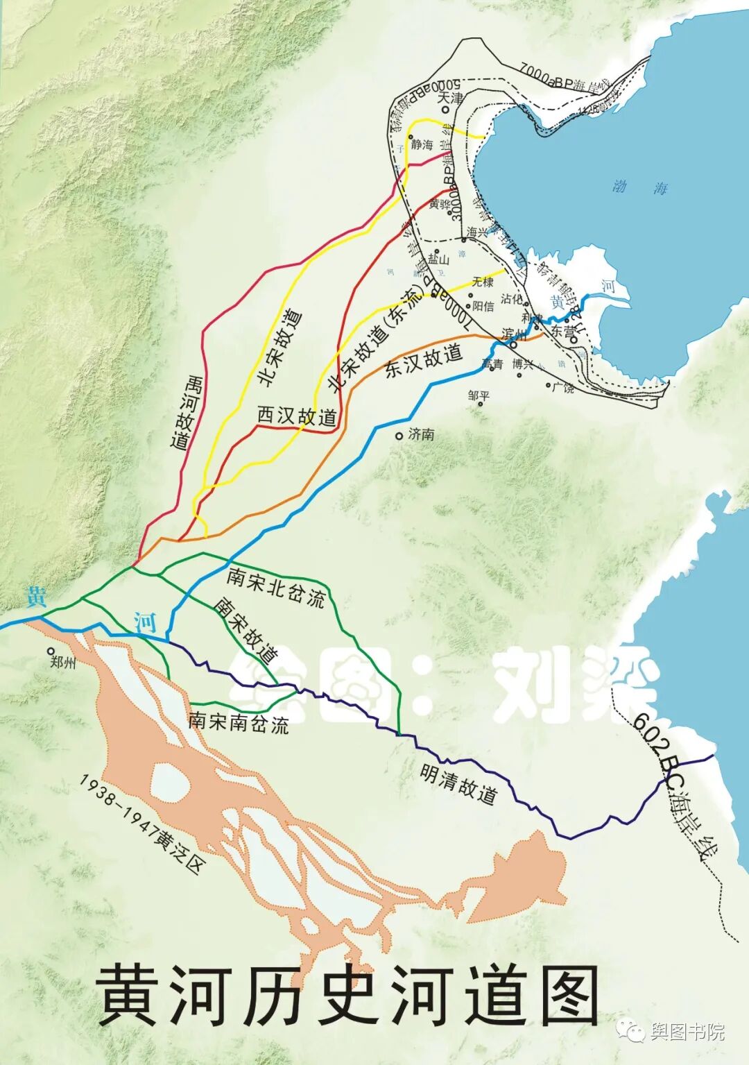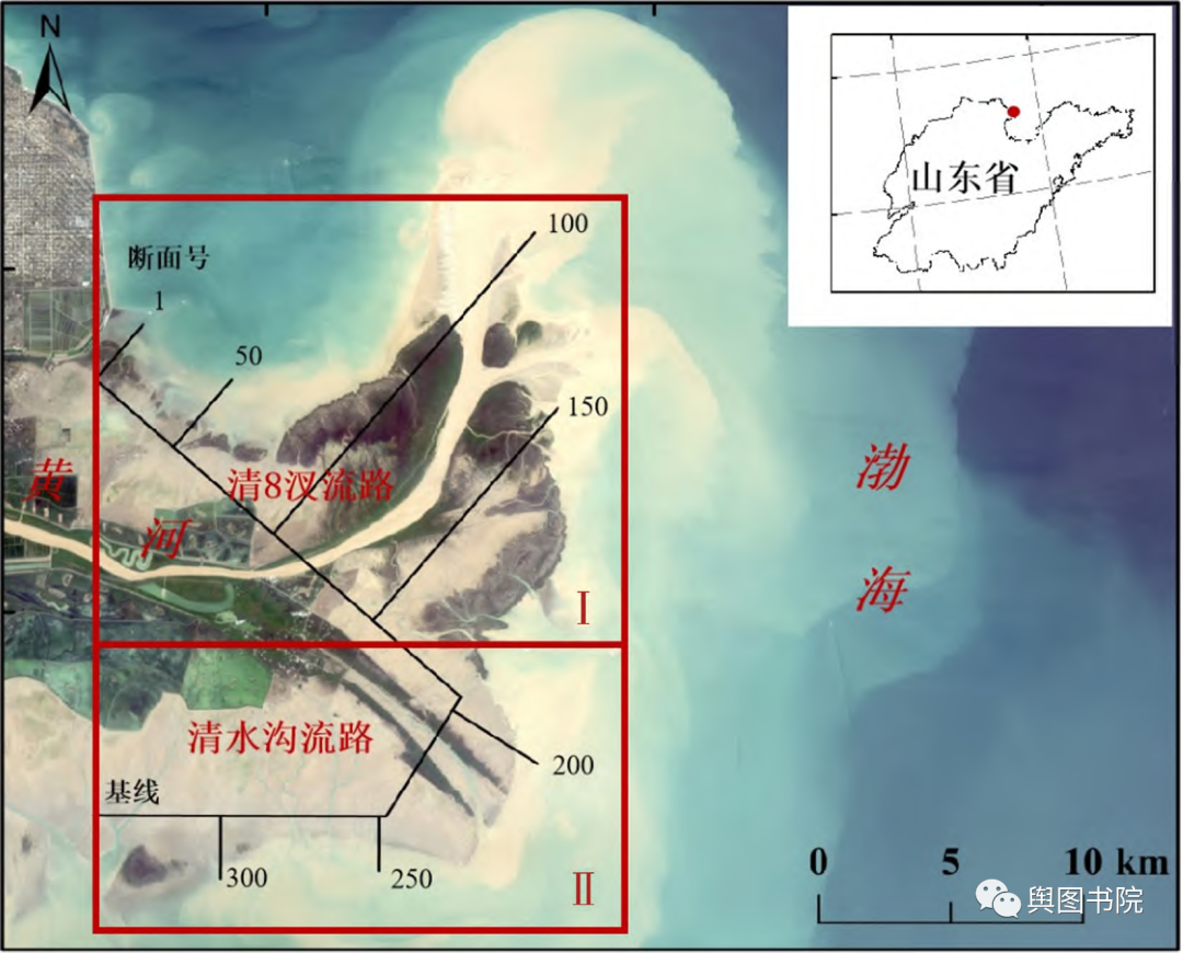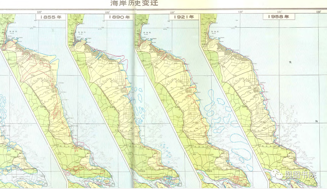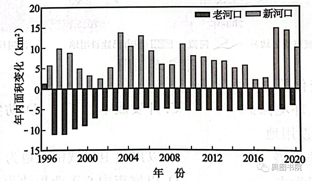 老河口陆地面积减小主要是海侵引起的,所以陆地形态依据新河口展出情况可以推断先后。改道以后的老河口,失去泥沙源,主要是侵蚀作用。