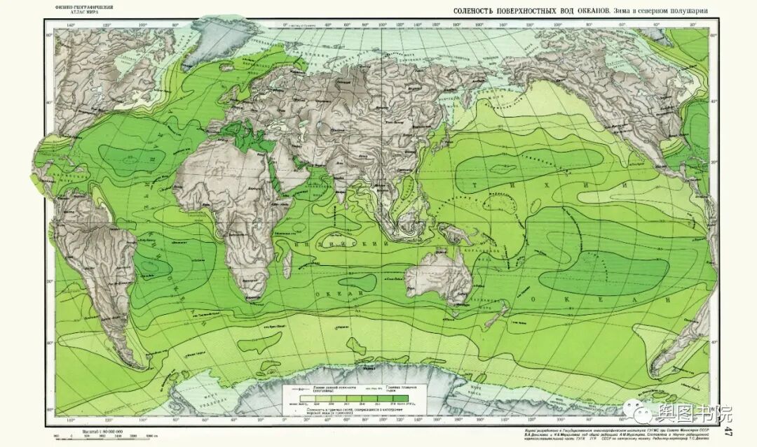 这部分素材可以结合气温,盐度,洋流图进行分析。