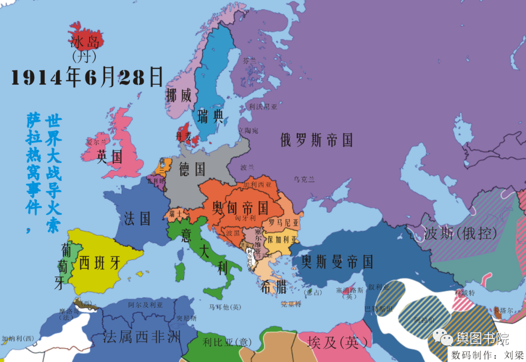 昨天是6月28号。1914年的6月28日,爆发了震惊世界的萨拉热窝事件。奥匈帝国皇储费迪南大公在和妻子苏菲(或者叫索菲亚)访问萨拉热窝期间被塞尔维亚族青年普林西普开枪打死。这对夫妇的死成了一个月后爆发的第一次世界大战的导火索。今天我们透过地图的变化来探析战争。