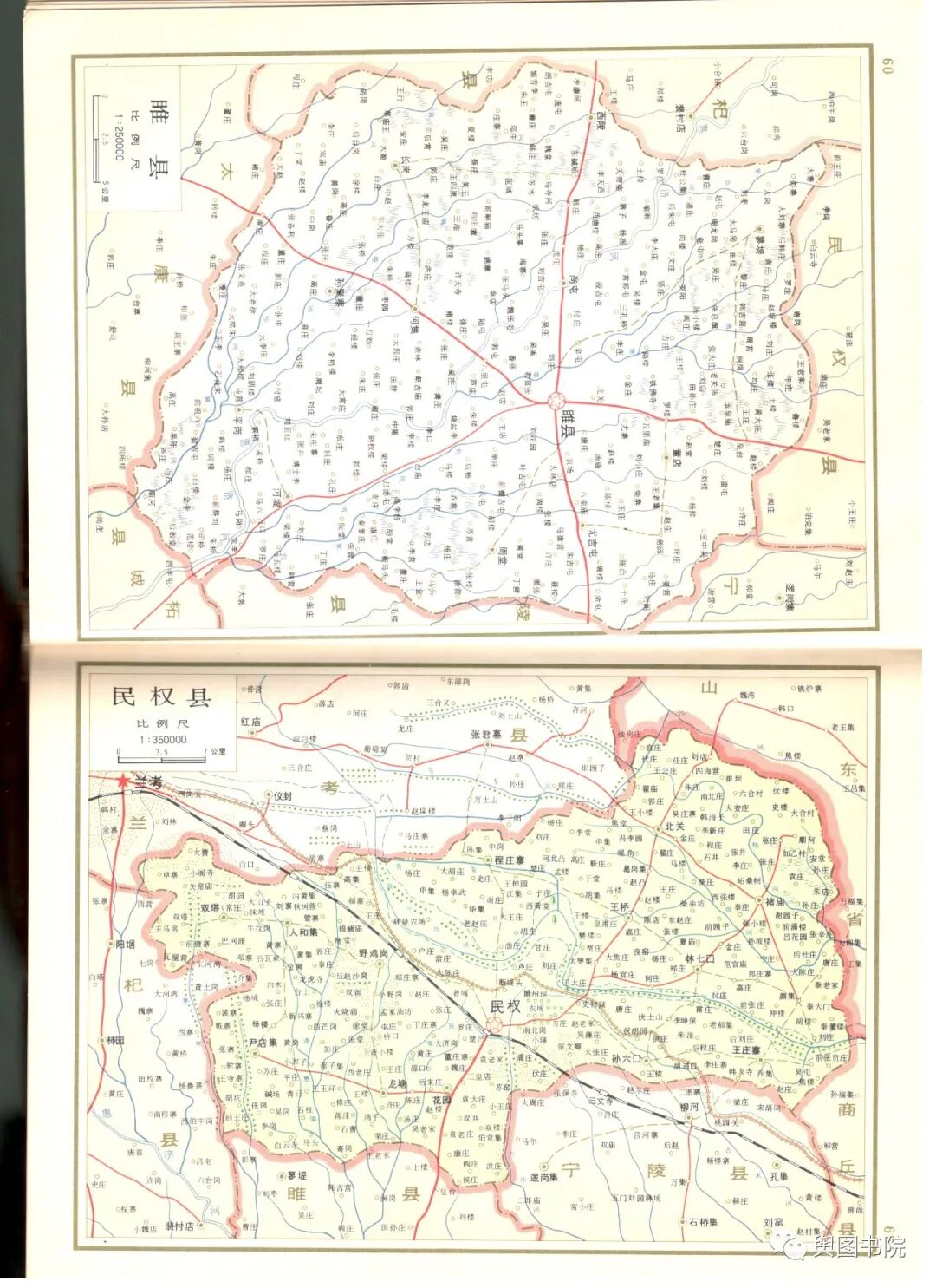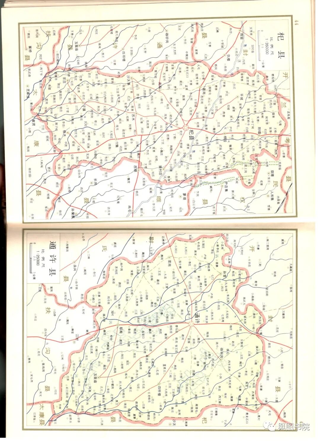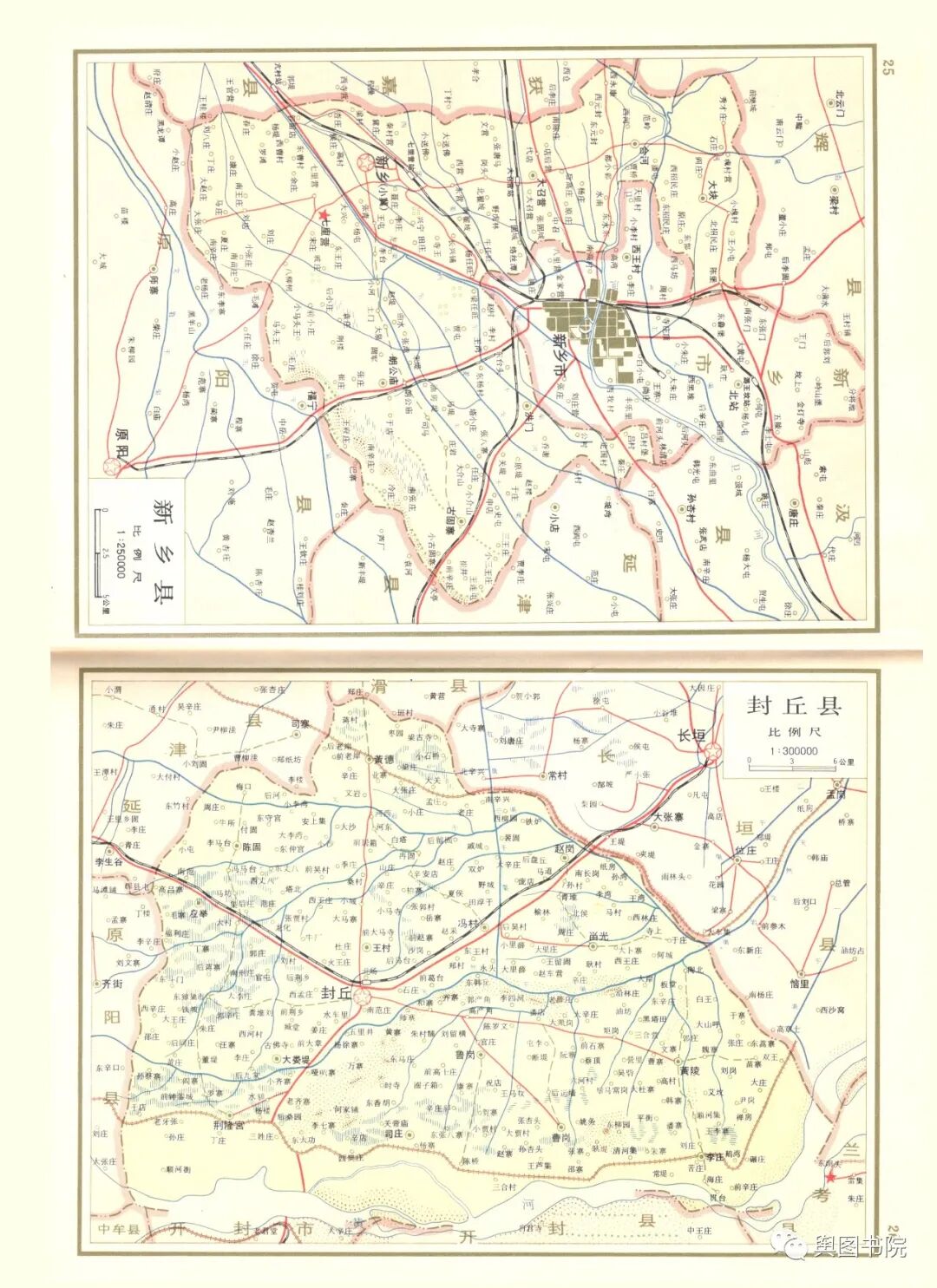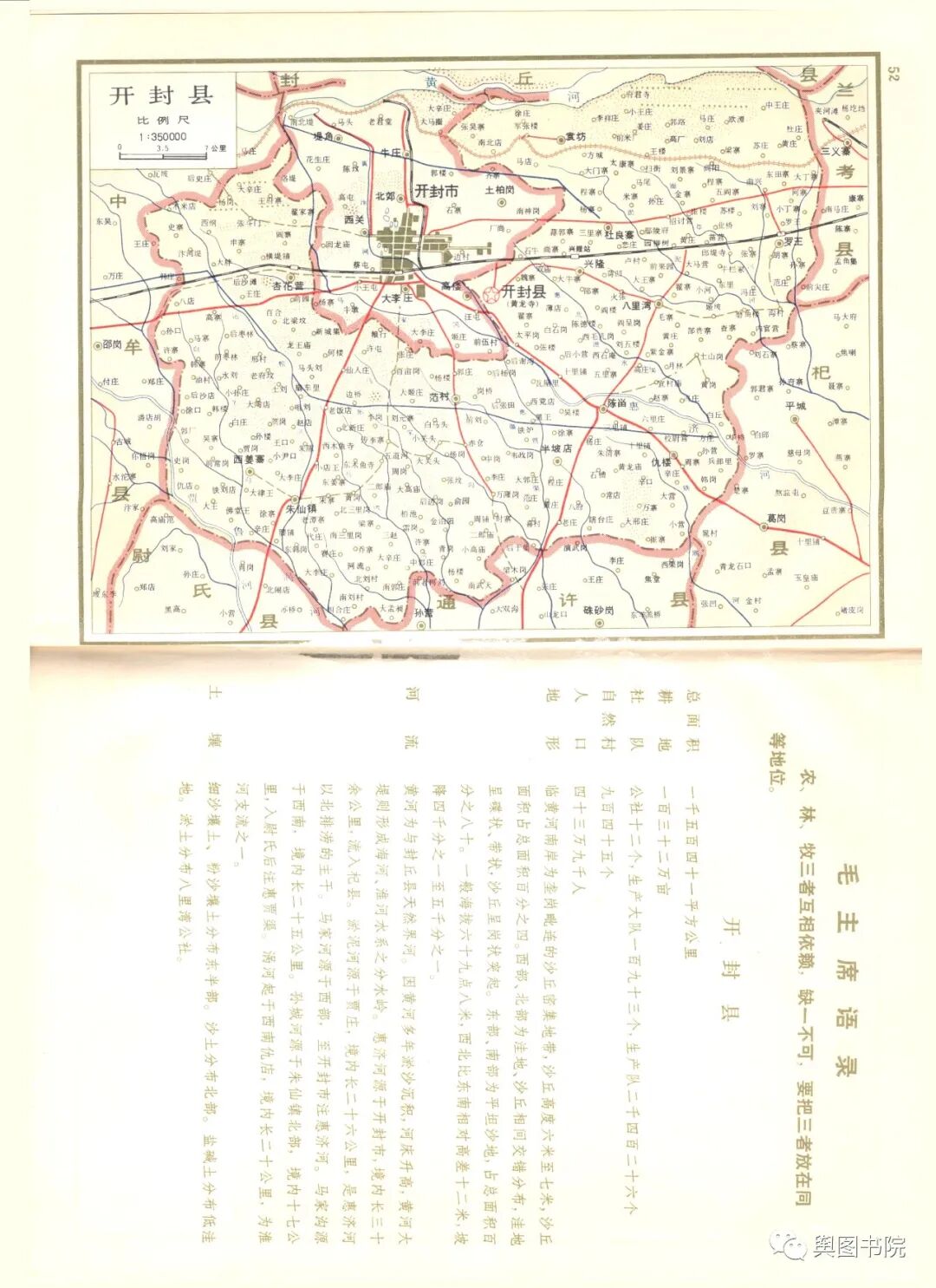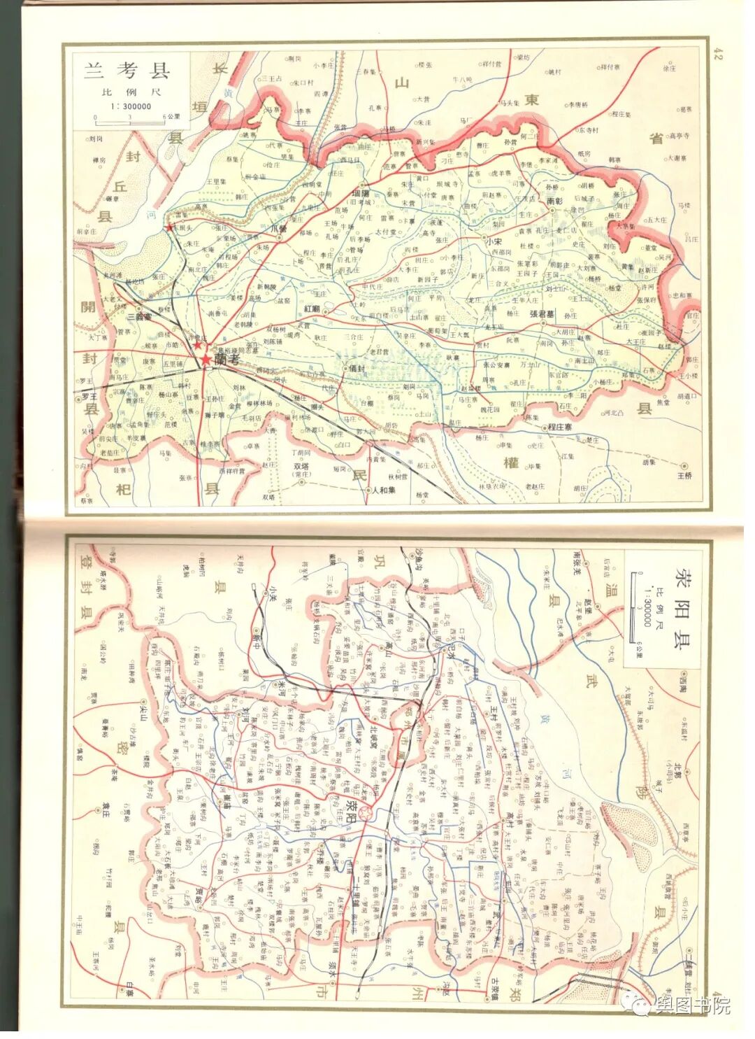 兰考县图幅比较特别,乡镇级别的地名使用繁体字,不知为何。这座县城也是河南省非常独特的一个县城,县里有三颗红五角星,这些都是当年主席造访的地方,县里的沙地和沟渠的改造,是当时全国利用和改造自然的典范。这类模范和样板城市或者区域,在全国并不多。所以兰考在当时算明星县级。兰考本身是叠加地名,是黄河改道位置,兰阳,仪封,考城这些历史的县记录这些变迁。