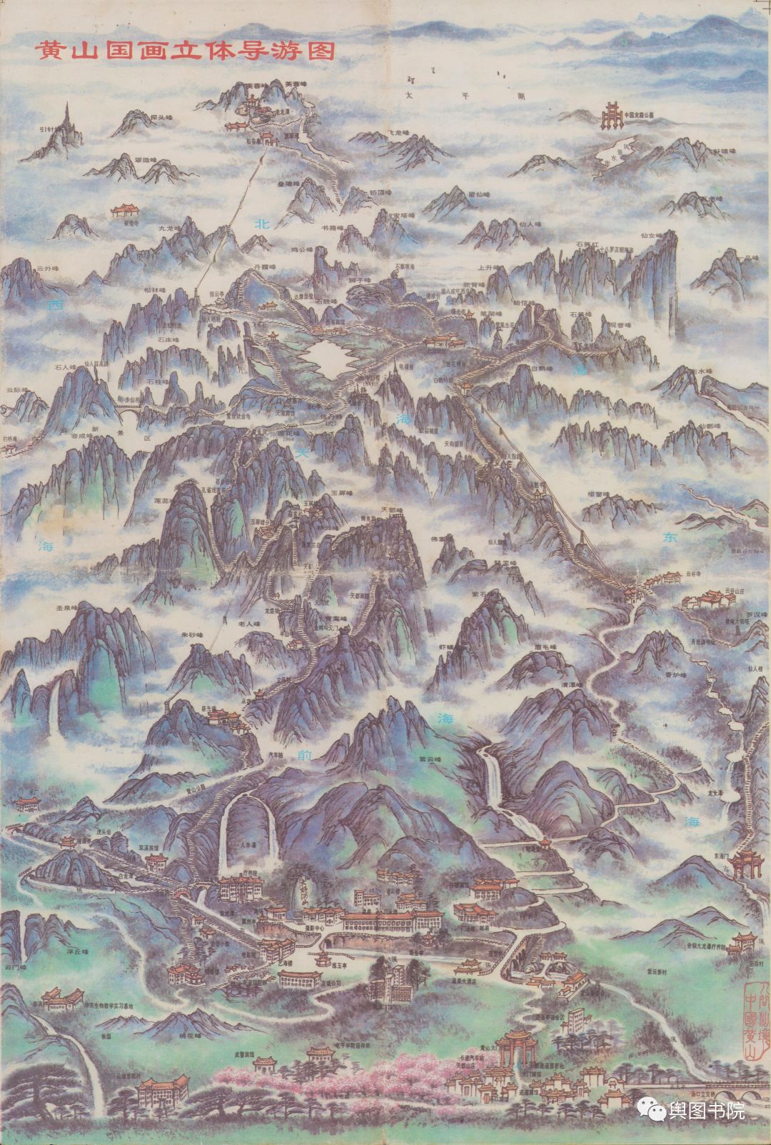 这幅地图同样是国画风格的旅游地图,将国画的写意和地图的严谨纪实完美融合。五岳归来不看山,黄山归来不看岳。泰山之雄伟,华山之峻峭,衡山之烟云,匡庐之飞瀑,雁荡之巧云,峨眉之清凉,黄山皆有之。黄山有72峰,这幅山水画一般的地图将黄山重峦叠嶂尽收眼底。