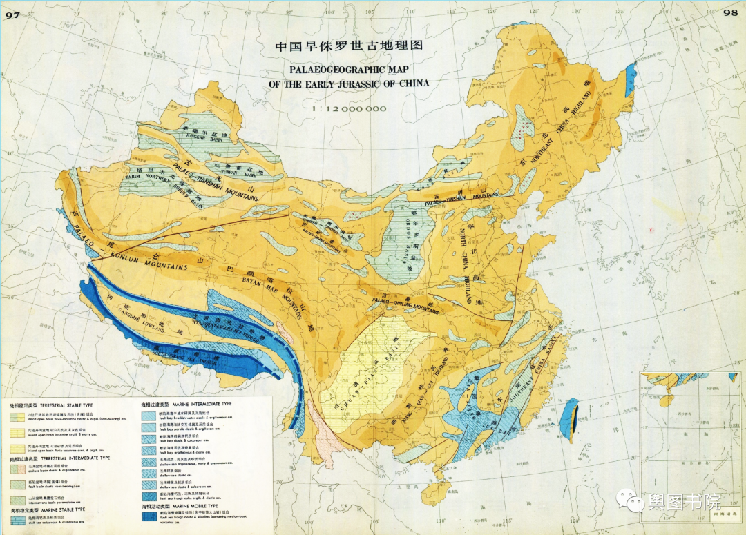 (距今1.9亿年以来的早侏罗纪时候古地理地图,这是四川盆地和川西高原开始形成的年代)