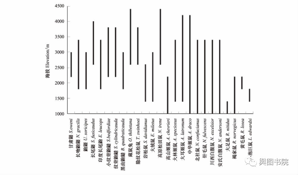 (贡嘎山东坡小型动物分布情况)