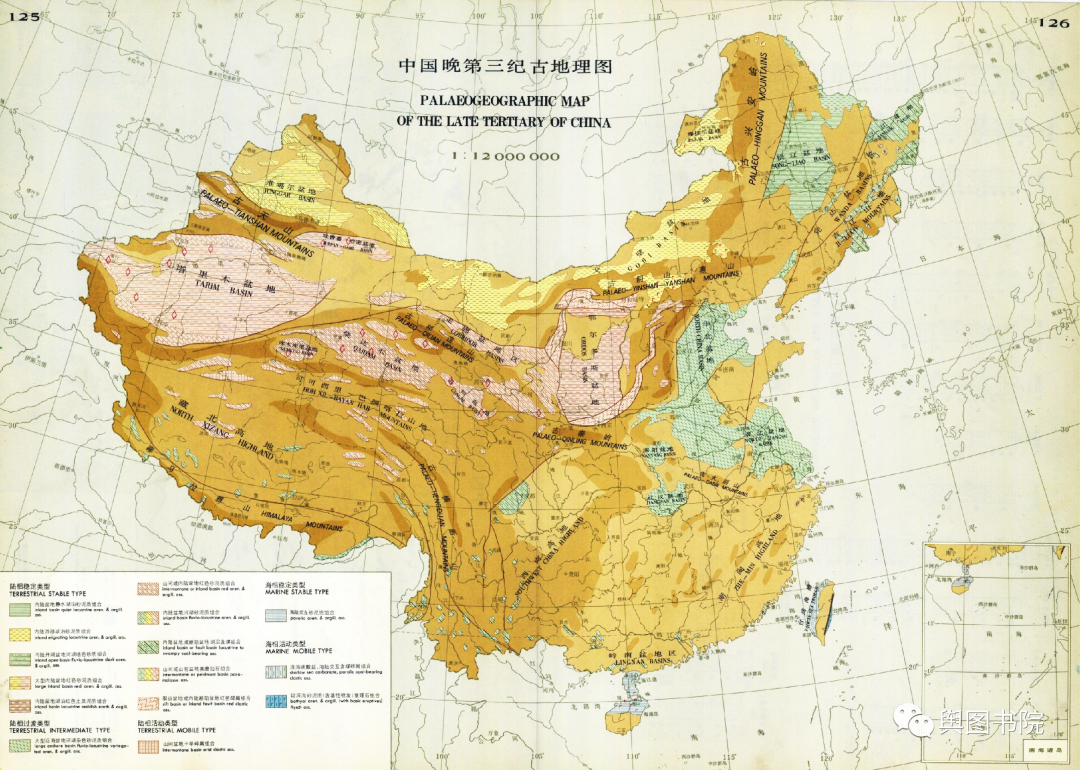 (两千万年前以来的晚第三纪古地理地图,这个时候青藏高原区域已经全部结束海洋历史,喜马拉雅山脉急速隆起,川西的极高山也在这个阶段快速增高)