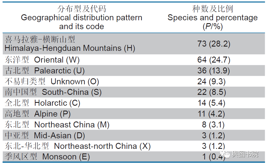 (贡嘎山鸟类分布类型)