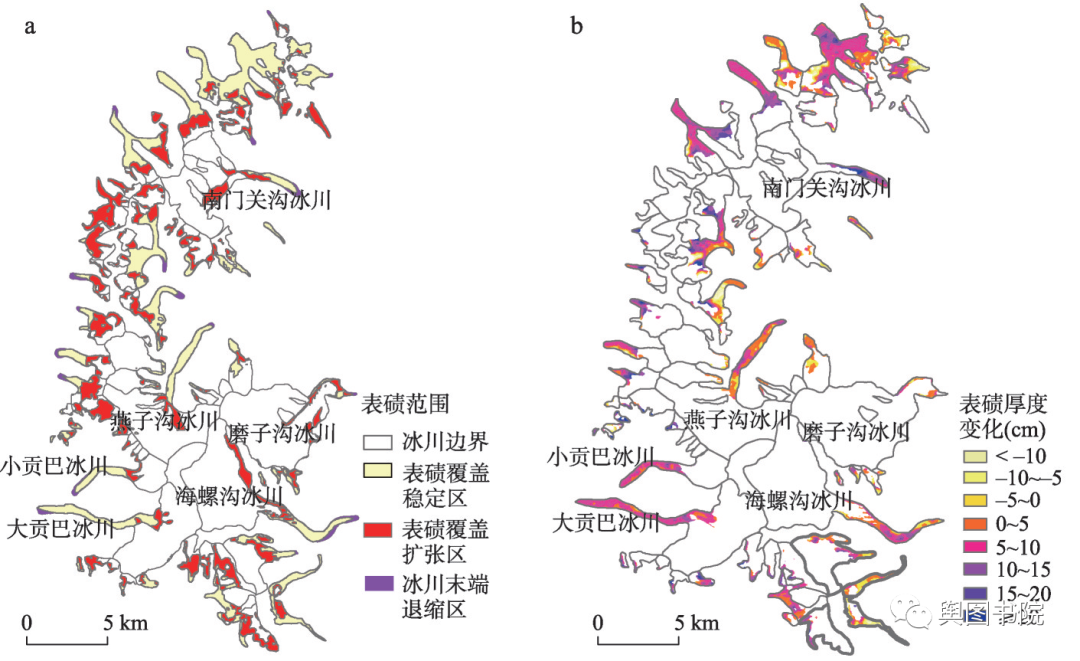 (通过表碛沉积物监测冰川退化现状示意图)