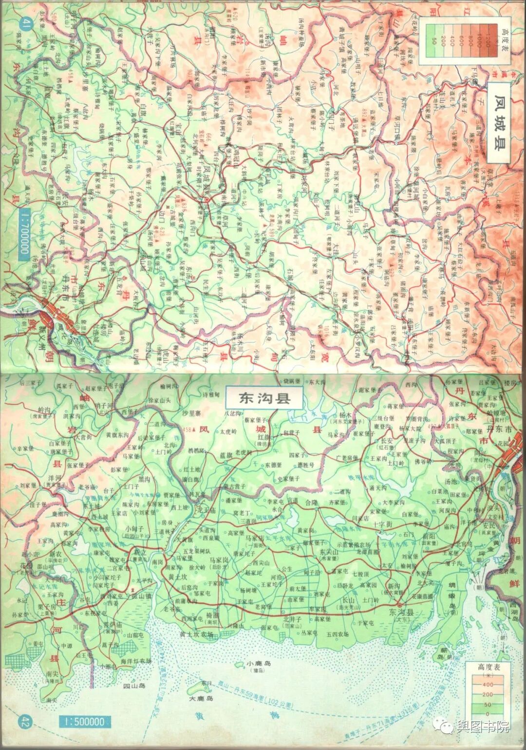 东沟县是今天东港市,图中鸭绿江口的两岸双国界,是中国国界比较独特的一段。
