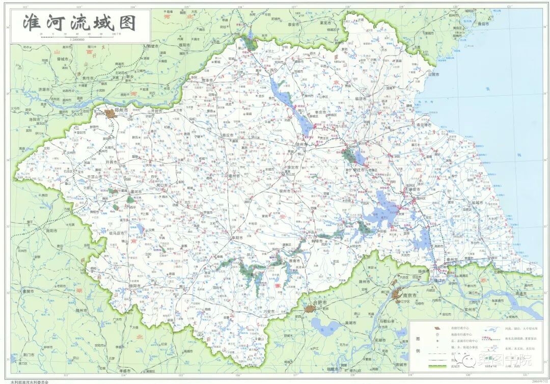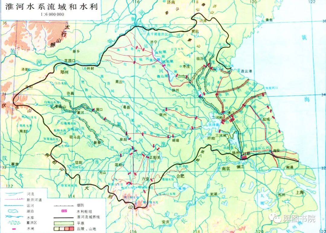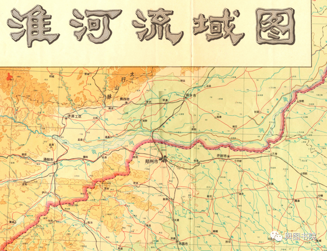 (淮河流域图(局部),我们可以发现郑州,开封等地都位于淮河流域,但是这些城市更“偏爱”黄河)