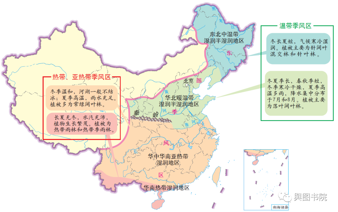 (中国自然区划,淮河是东部季风区内部最重要的界限)