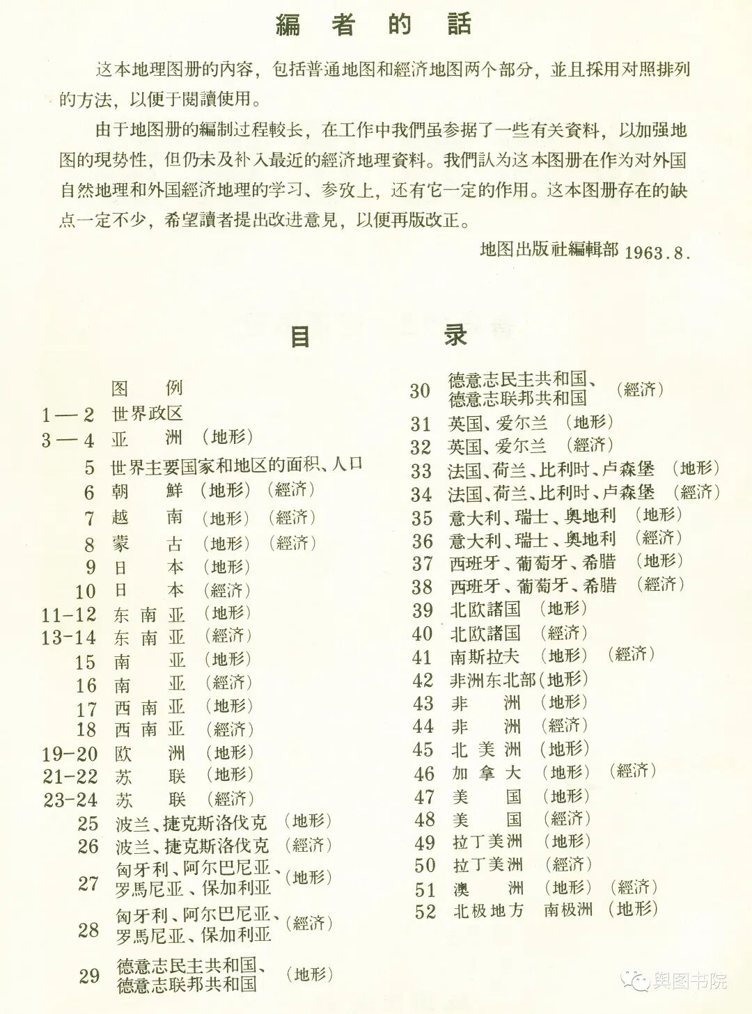 我们今天欣赏的是这份珍贵的1963年的外国地理图册,这份图册具有很强的承前启后的价值,同时某些元素也是空前绝后的,让我们拭目以待吧,欣赏这份艺术精品的同时,也穿越回那个年代,寻找时代的脉络。