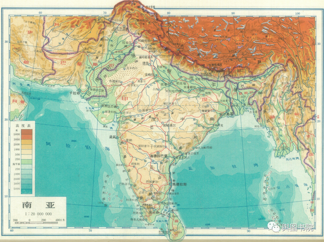 当时南亚范围和今天相同,包括南亚次大陆诸国,有印度,巴基斯坦,尼泊尔,不丹,锡金,锡兰。锡金在1975年被印度占领,并在2004年消失在中文地图中,锡兰后来叫斯里兰卡,而孟加拉国也在70年代独立。