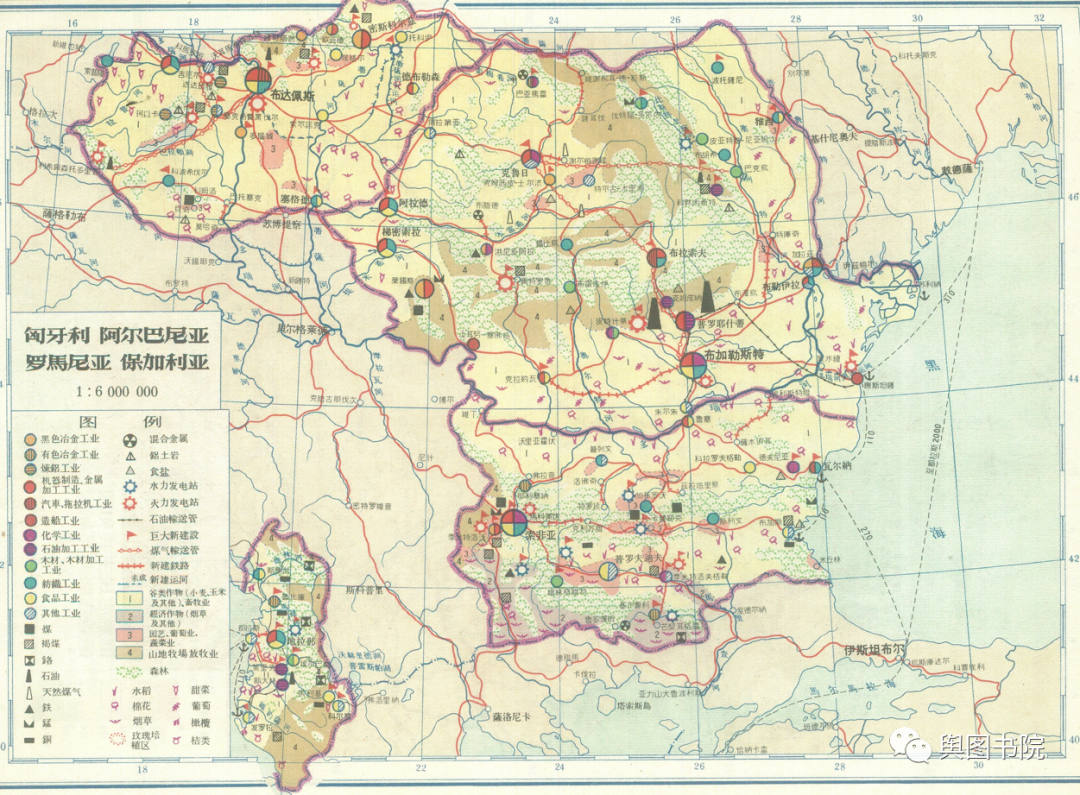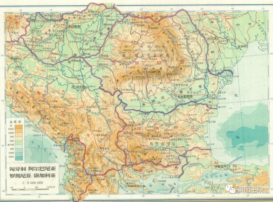 匈牙利,阿尔巴尼亚,罗马尼亚,保加利亚位于靠南一些的区域,这些国家在一战和二战之间,领土经过多次调整,当时属于苏联阵营。这个图幅实际上是可以囊括南斯拉夫的,但是南斯拉夫当时被苏联踢出去了,中国也继承了这种画法,所以图幅显得比较奇怪。