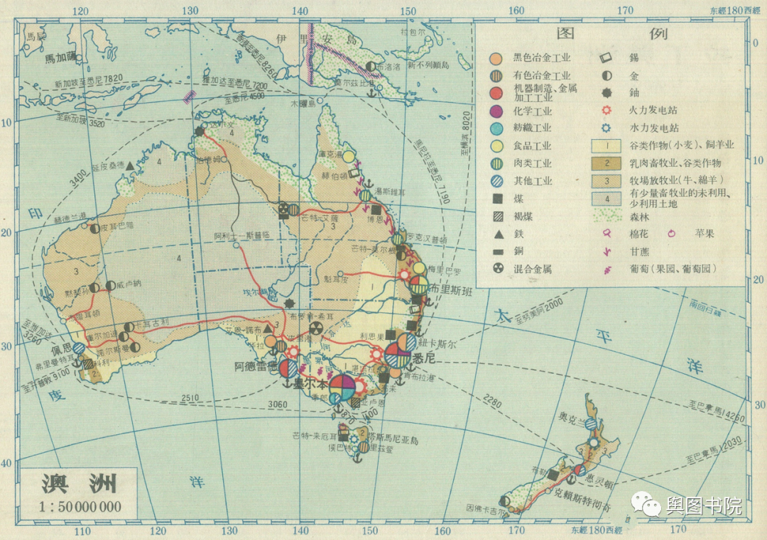 澳洲就是今天的大洋洲,因为大洋洲大陆是澳大利亚独有的,所以当时更多称呼“澳洲”。澳大利亚工业发达,东部和南部沿海已经形成了大片工业区。
