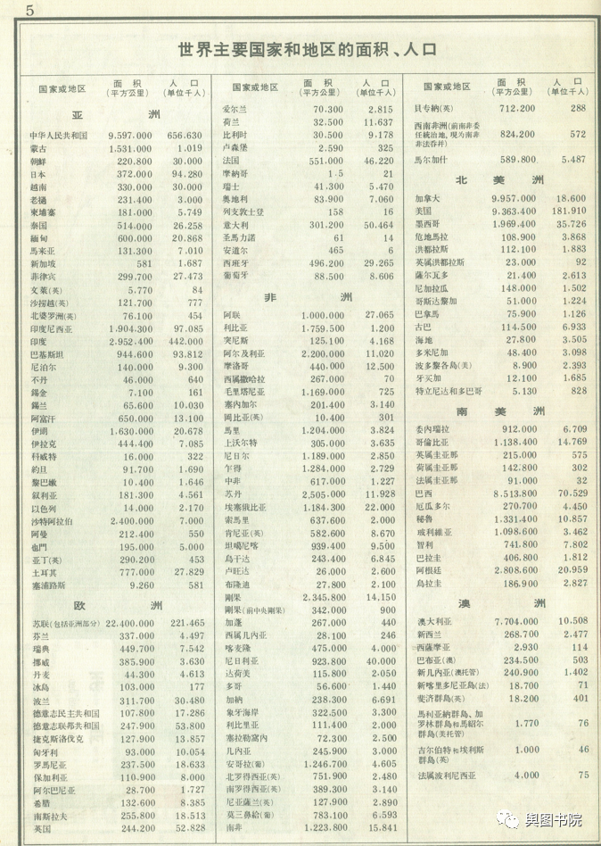 注意当时人口的单位是千人。当时世界只有4个国家人口过亿。中国当时6.57亿人世界第一,印度4.42亿人排名第二,苏联2.21亿人排名第三,美国1.81亿排名第四。如果算上东欧卫星国,苏联在当时控制的人口数量还是相当庞大的,这也是苏联冷战时候的底气之一。