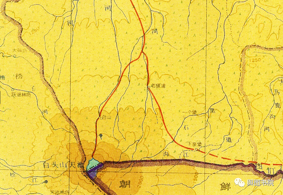 1957年时候,湖泊标记为天池,天池旁边的高山则由长白山改为白头山。