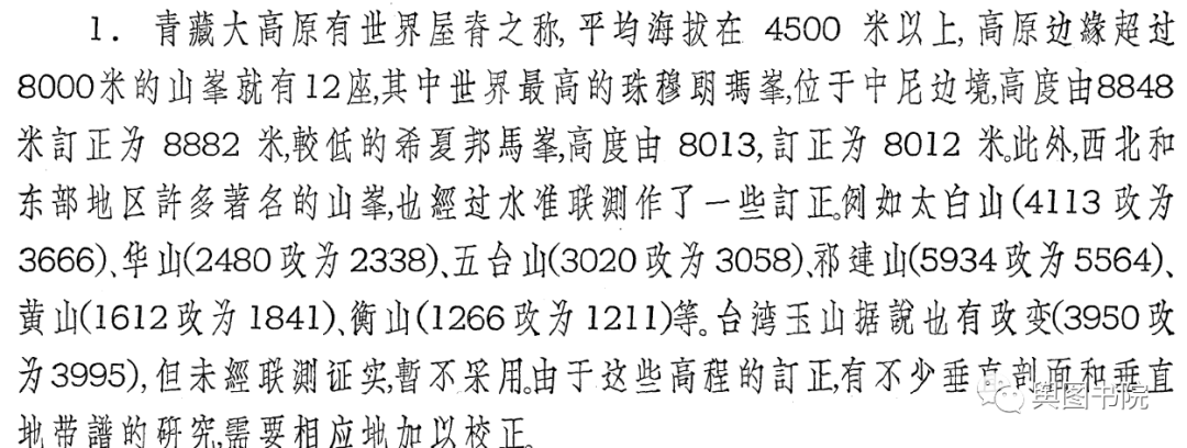 (1965年自然地图集地图说明关于高程修订的介绍)