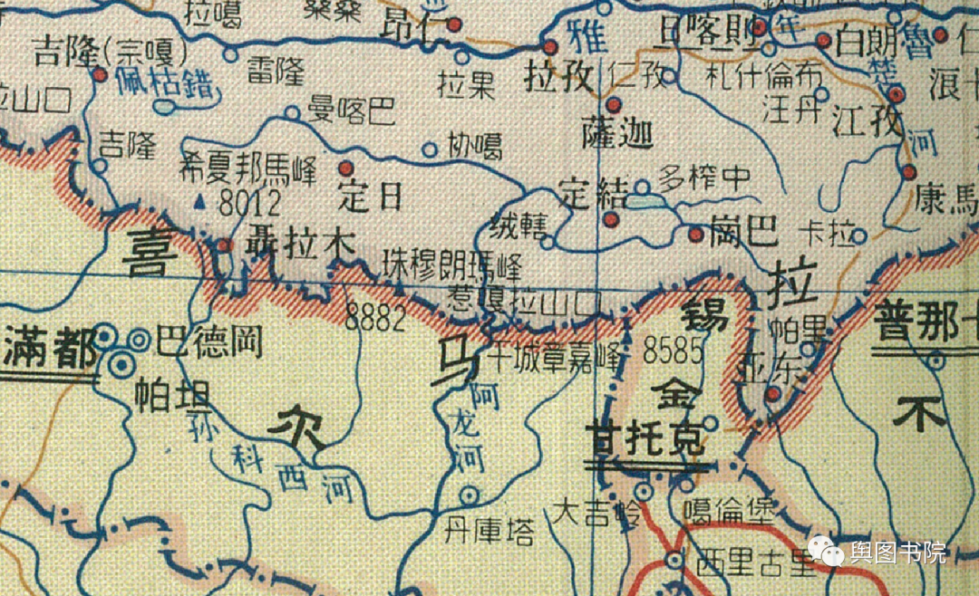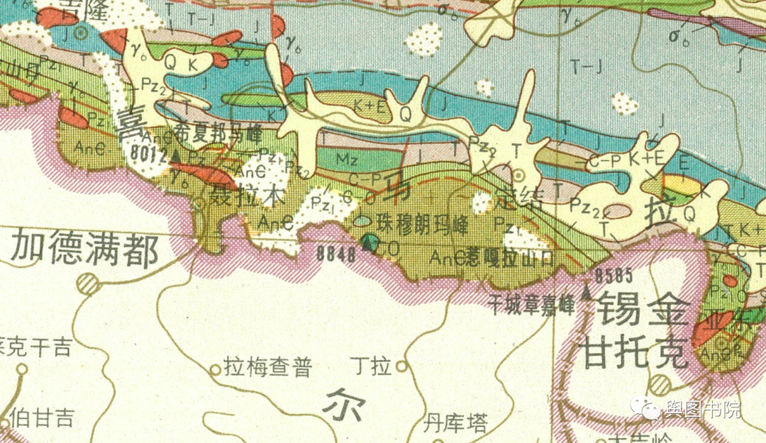 1950年,珠峰使用的是旧的高程,8882米,而且标注的是英国名字,埃佛勒斯峰。
