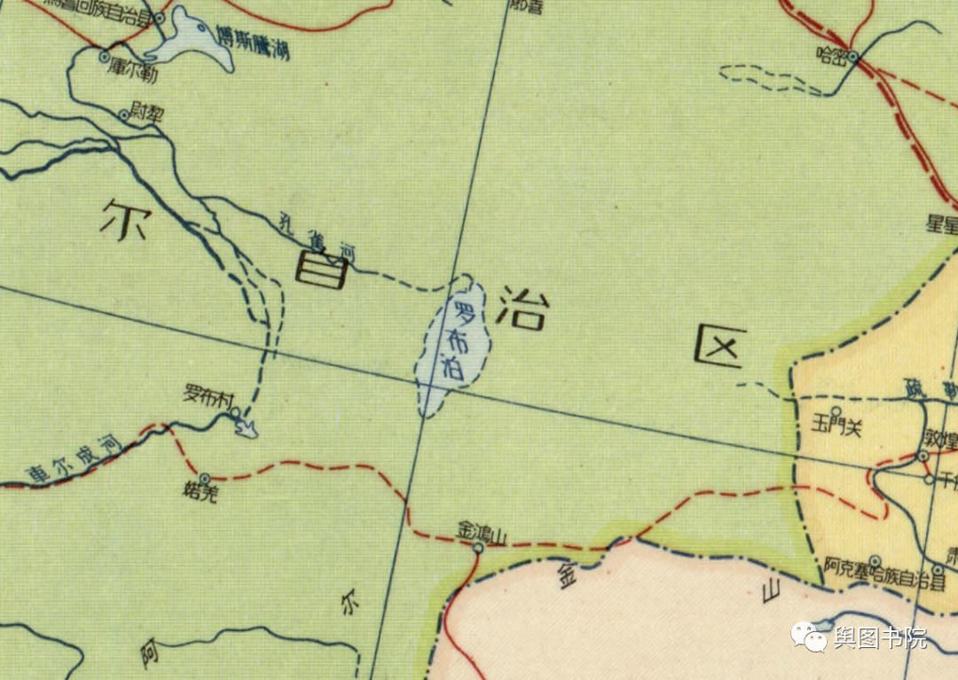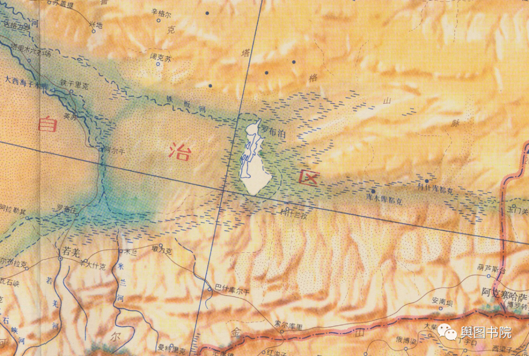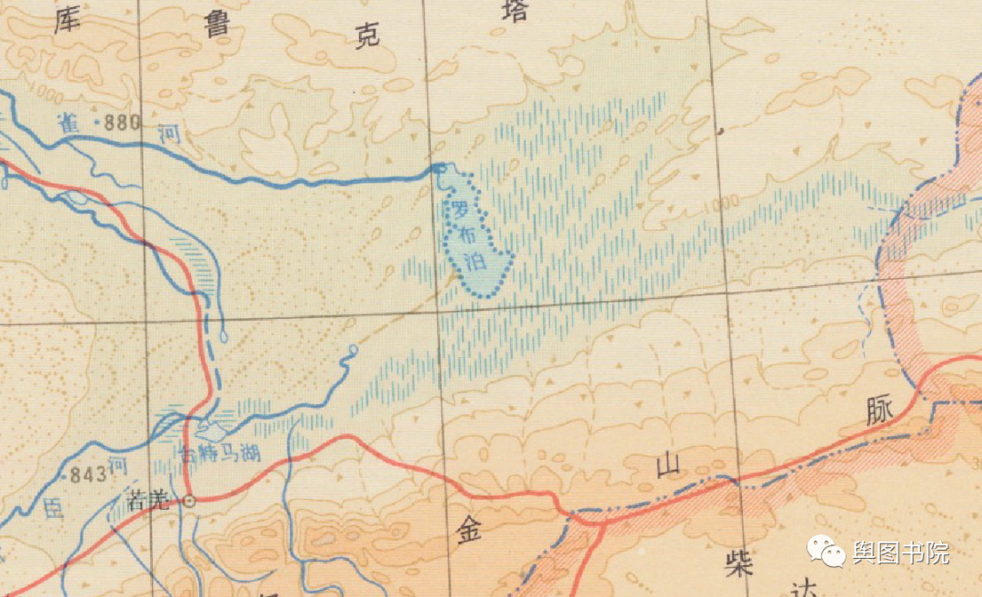 罗布泊曾是中国第二大湖,仅次于青海湖。历史上历经变迁,1958年时候,尚有3500平方公里水面,那么,这个湖泊在地图上是如何体现的呢?