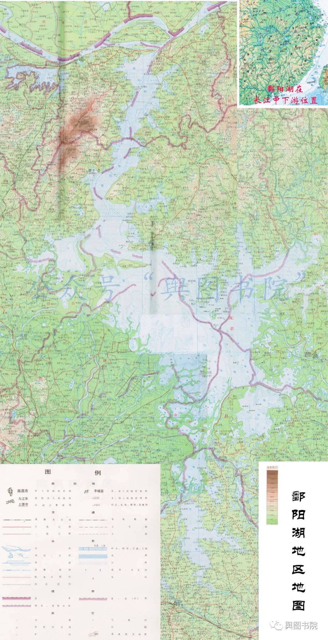 (鄱阳湖地区地形图,1988年。敬请欣赏。该地图是区域内最精美的一幅地图。地图电子版关注公众号,后台发送“鄱阳湖”即可获得)