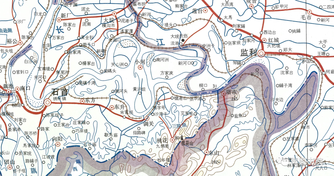 荆江地区位于三峡出山口下游,地势低平,河流蜿蜒曲折,是长江河段防洪压力最大的河段。在地图上,我们见证了这个河段的变化。