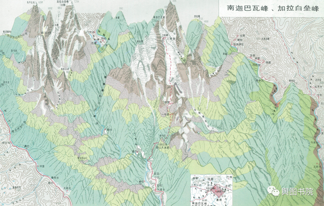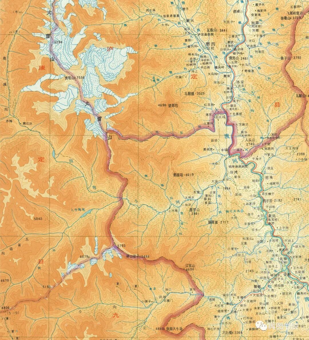 (贡嘎山附近地形图,更多贡嘎山介绍戳链接:舆图鉴赏——什么是贡嘎山)