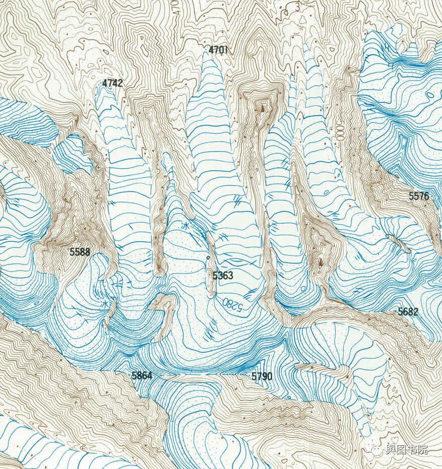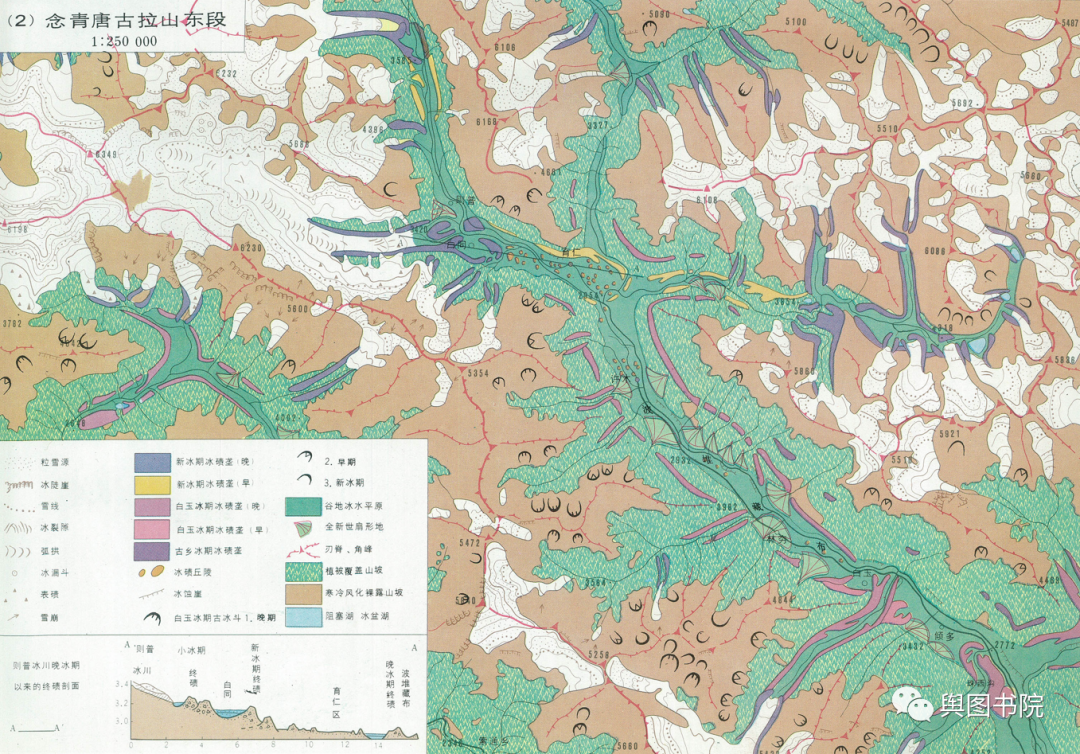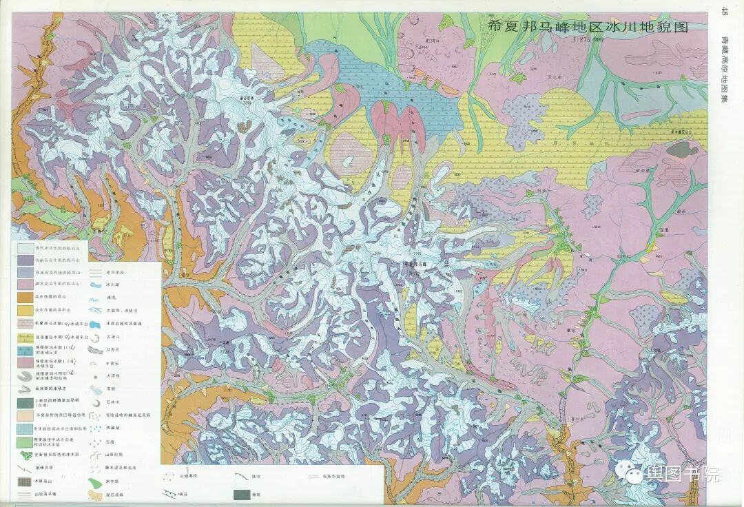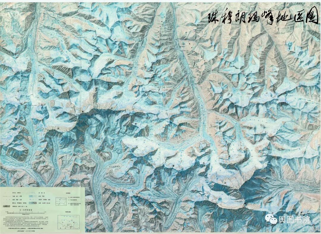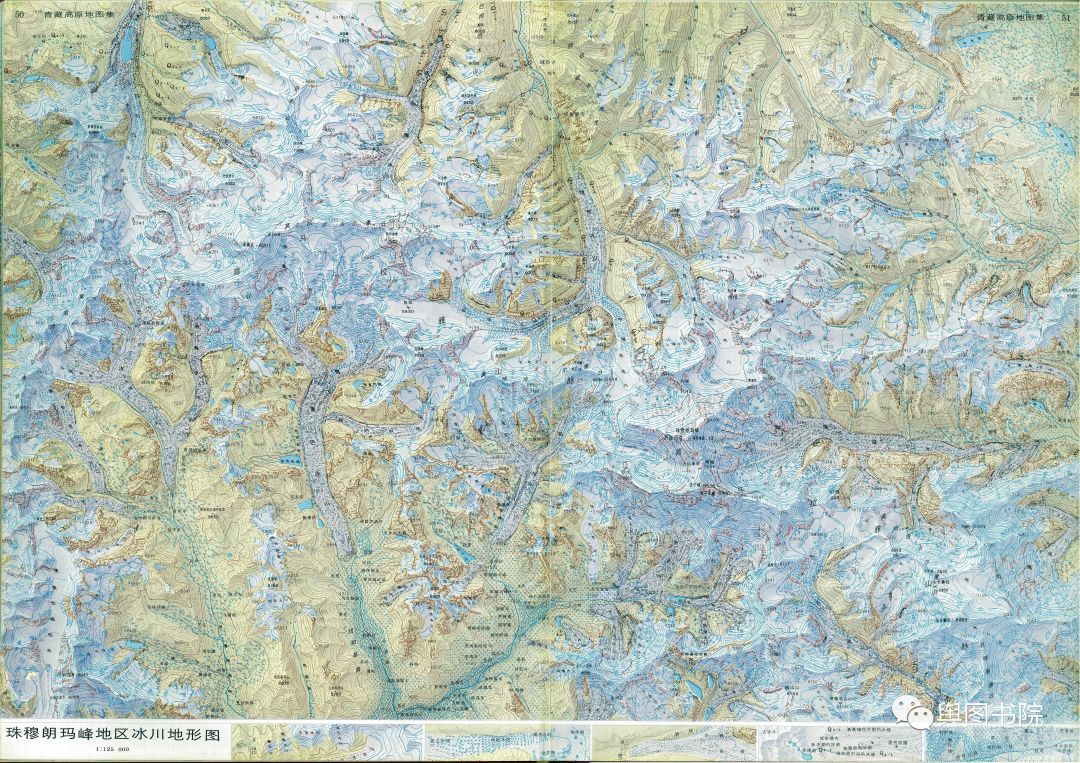 (珠峰冰川图,1990年青藏高原地图集,敬请欣赏。你能找到其中的冰斗冰川吗?)