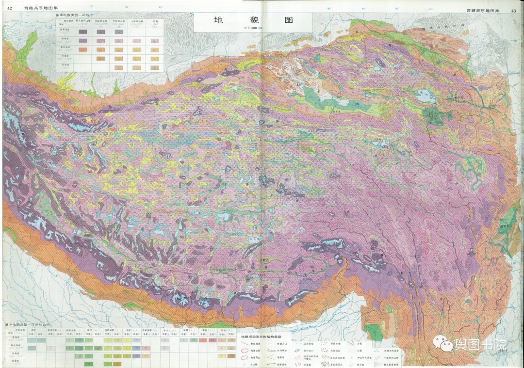 (青藏高原地貌图,出自1990年青藏高原地图集。这里是除了高纬度极地地区以外最大规模的冰川地貌区,区域内冰川面积达3.4万平方公里)