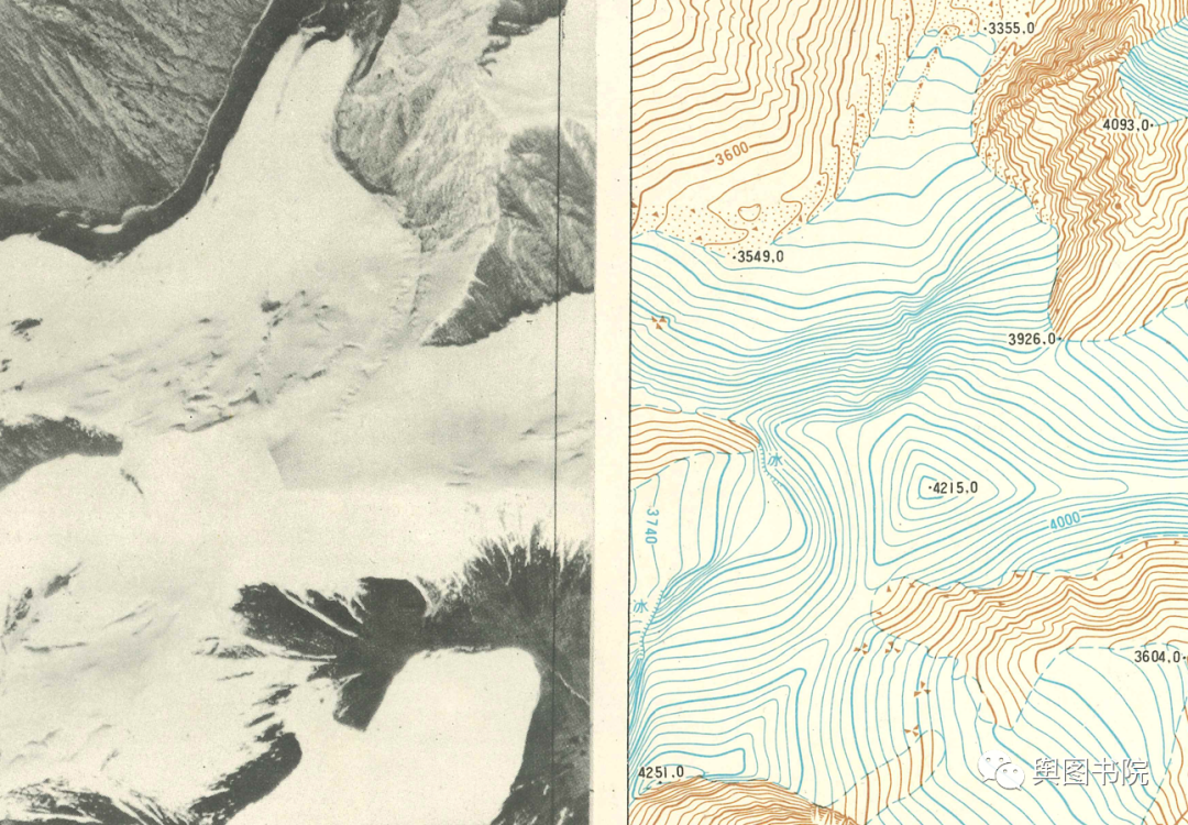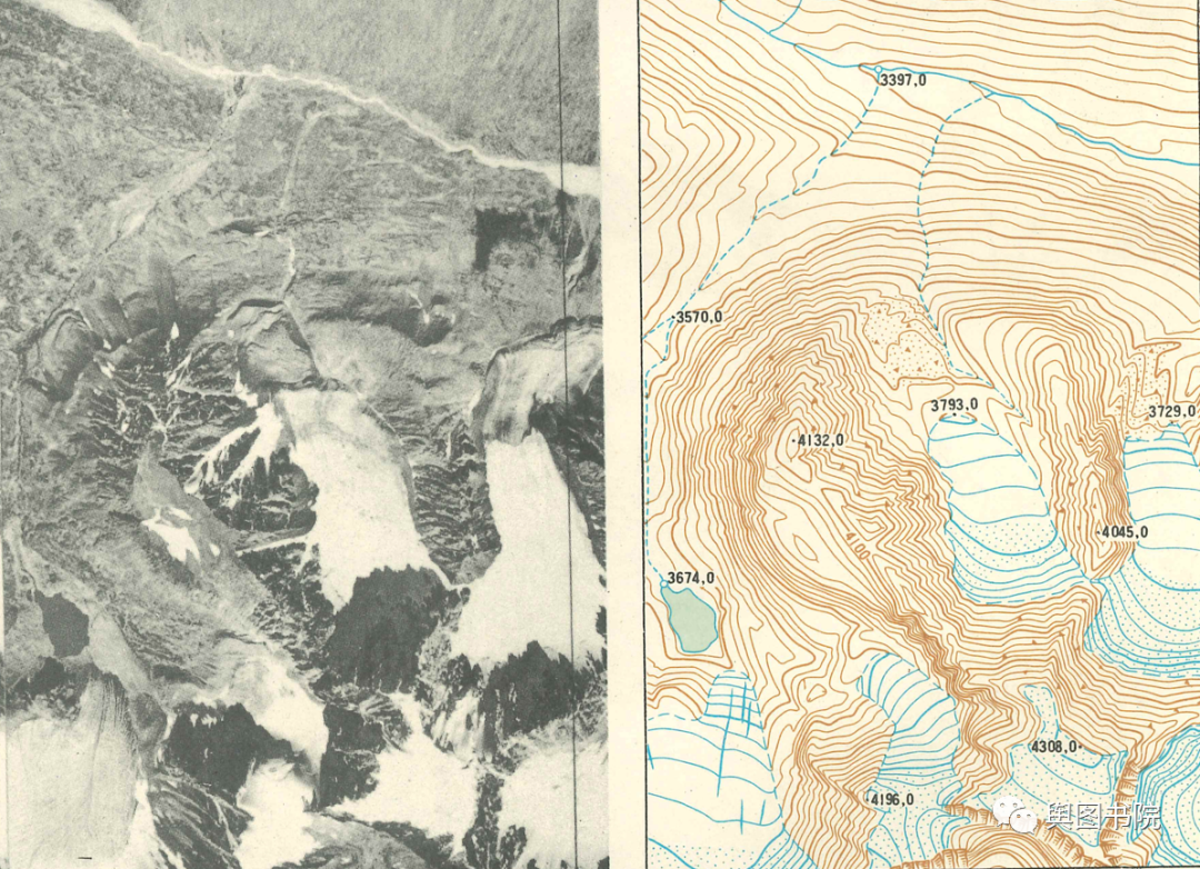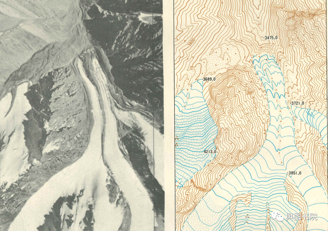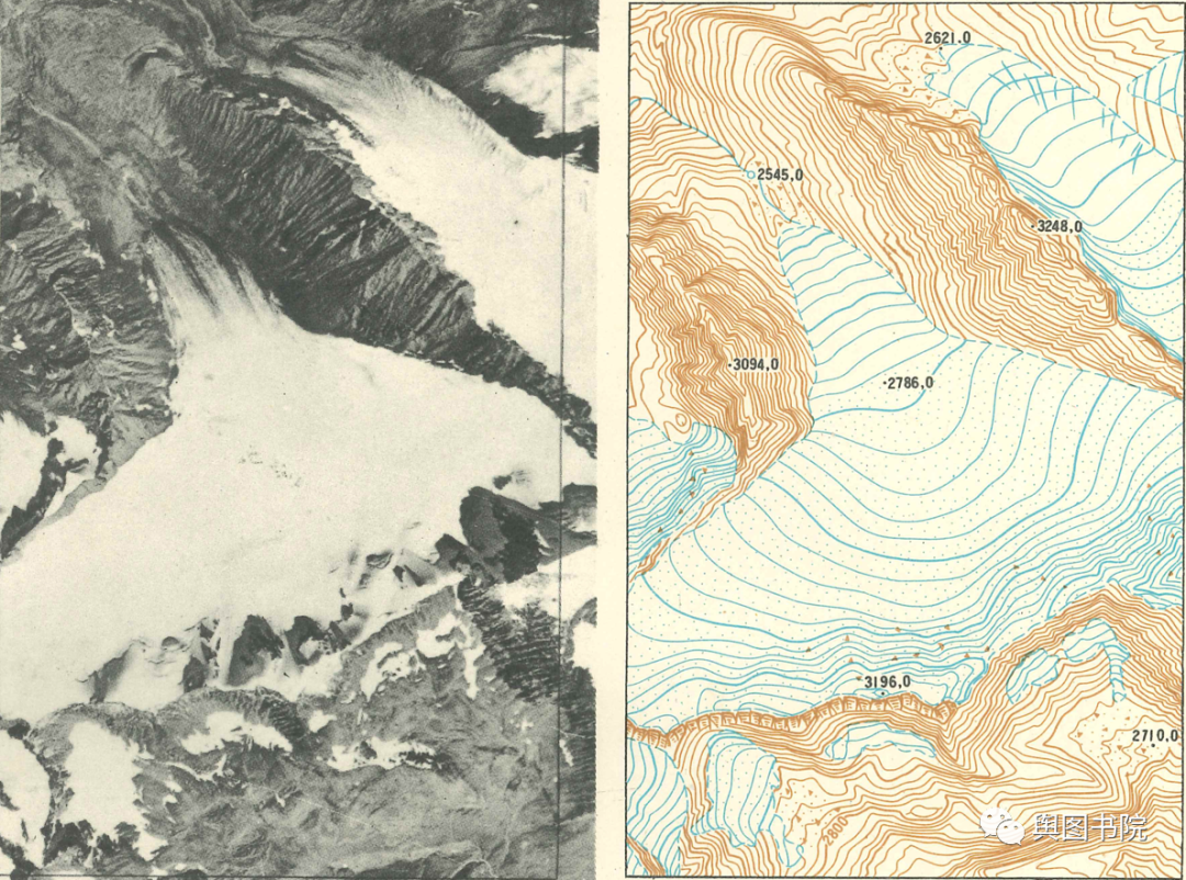(悬冰川影像和地形图,1975年。)