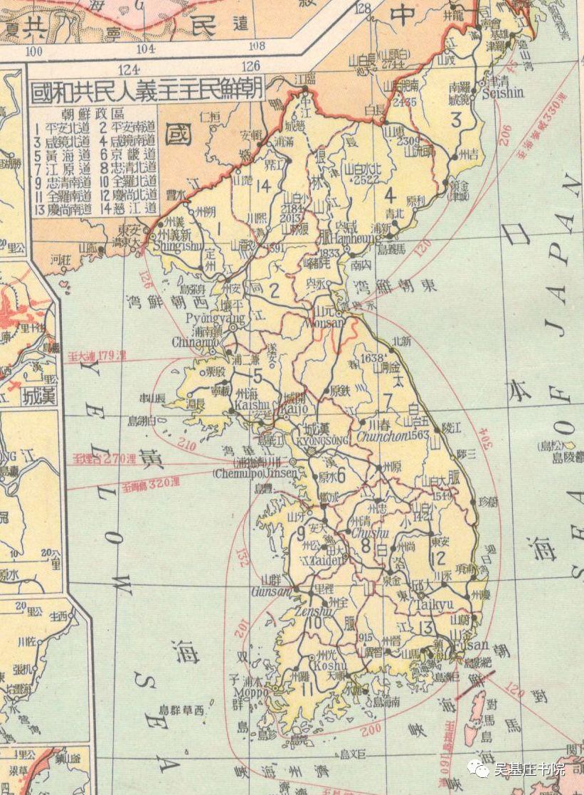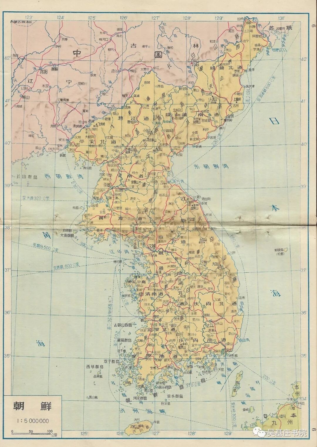 补充一句,在那个年代(50-60年代)日常的地图当中,不会出现韩国也不会出现三八线,后面的地图虽然不起眼标注了三八线但也不承认朝鲜分裂。朝鲜在地图上分裂那是很晚的事情了。