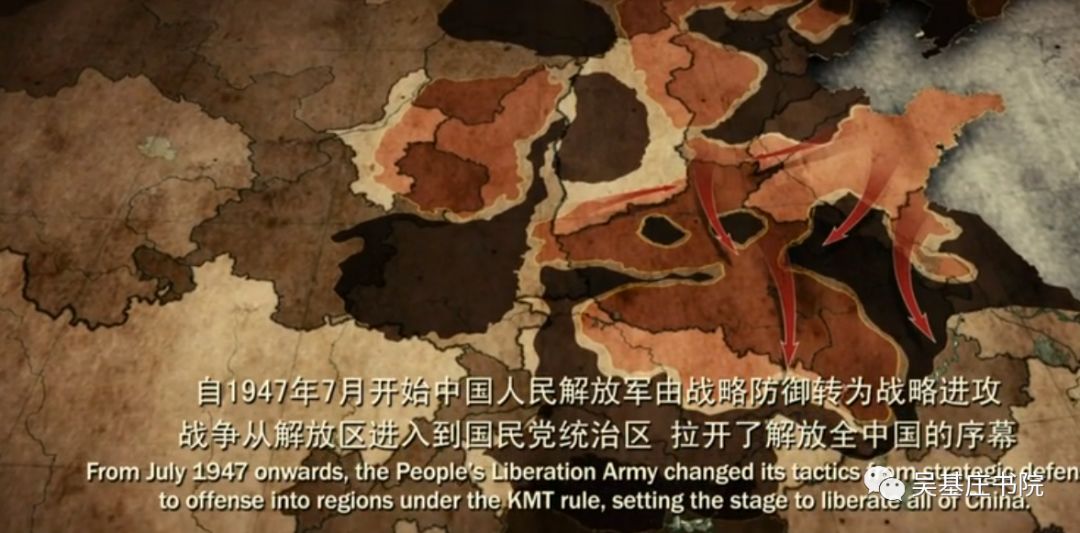 这个影片中还有一个镜头值得注意,就是关于解放全国的那张图。