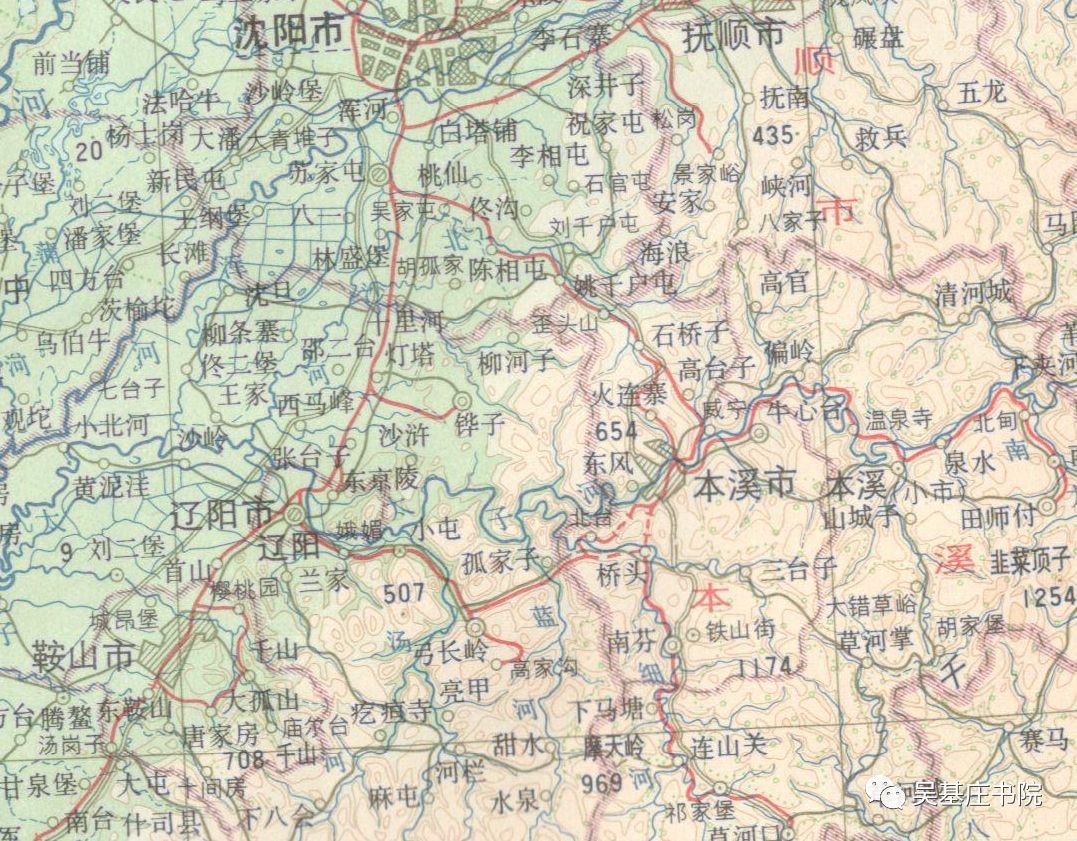 图中,沈阳,本溪等城市清楚可见,铁路也大体正确,这个底图仔细看,是地形图。先看这个地形,对比东北或者辽宁省地形图就可以发现,地形是张冠李戴的。这个地形图底图可能出自某个乡镇的地形图,而非东北地形图。此战役,如果仅仅是图上一个信息就能精确指挥,那打仗就简单了。
