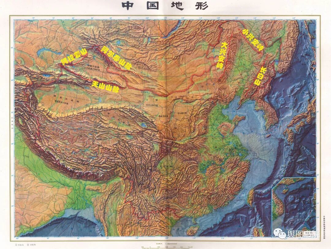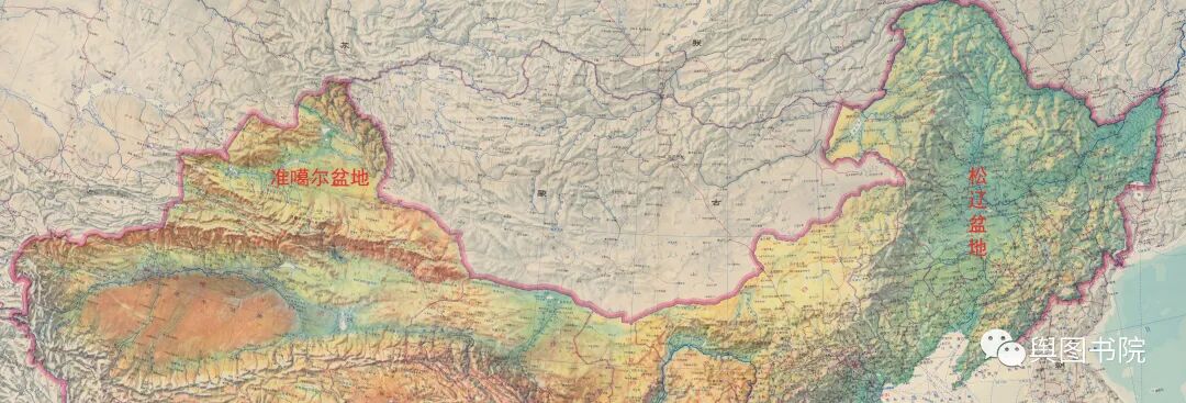 (中国地形(北部),松辽和准噶尔都是在中国纬度最高的盆地,呈现对称分布)