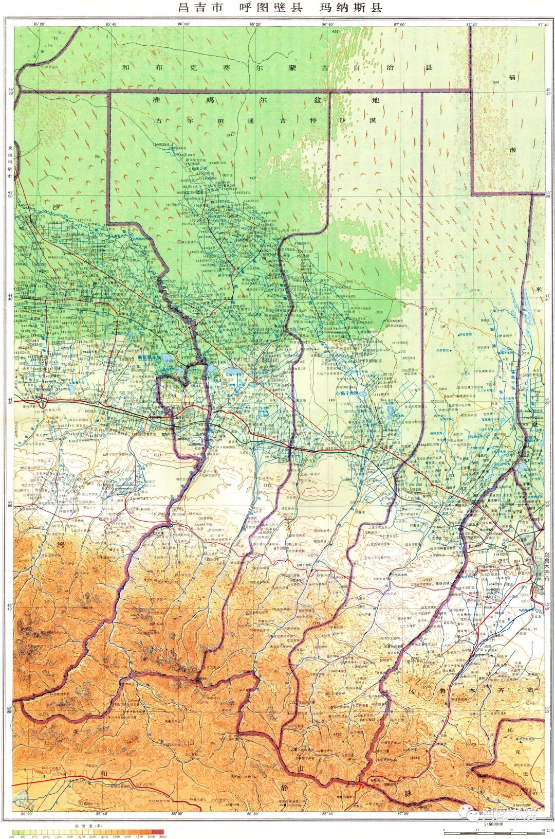 (玛纳斯绿洲一带地形图)