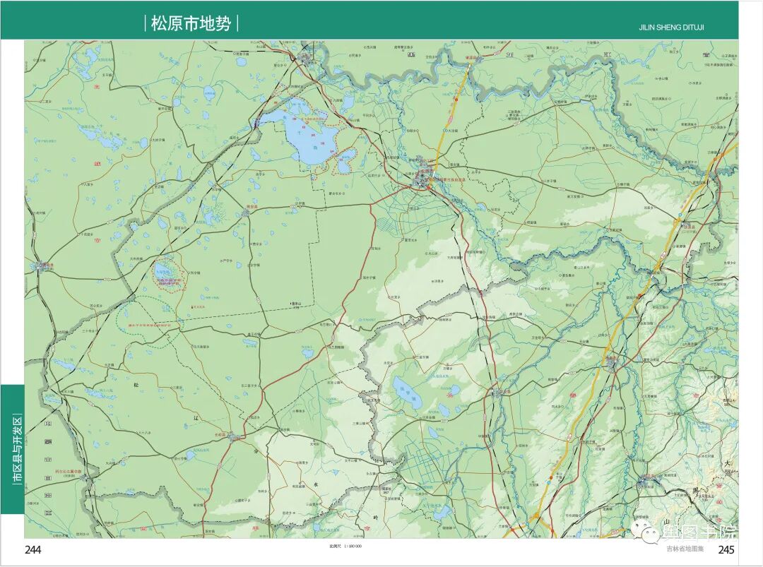 黑龙江-松花江分水岭和额尔齐斯河也是神似的,在松原市地图我们可以看到,松辽分水岭西段根本就不是一座山,几乎就是一片平地,平地里有一些“不知何处去”的河流,原地趴窝,形成了内流河。