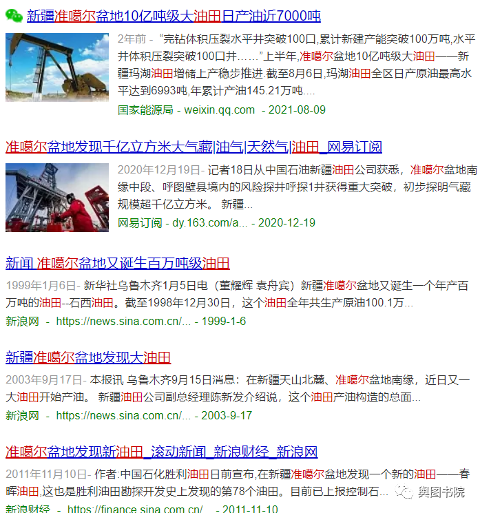 (网页截图,准噶尔总会有发现新油田的新闻)