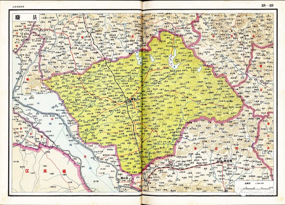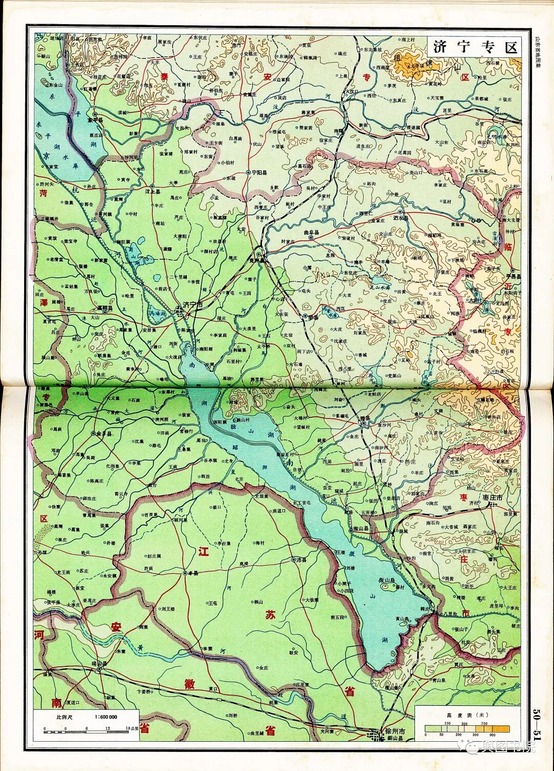 1964年的济宁,主要是1953年滕县专区和湖西专区部分县合并而来,50-60年代又多次撤并调整,形成图中格局。