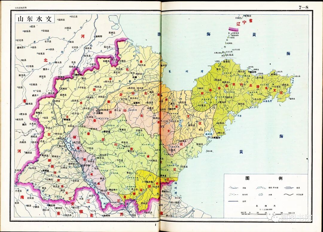 水文图也很有意思,当时并不按照流域划分,而是按照水文区划划分。这一划分主要是依据河流形态,冲淤模式,产水供水模式等划分的,偏重于水文本身。如果以水资源开发为视角,可能更多倾向于以流域进行划分。但是考虑到山东各地地形差异,水文区划比流域区划更有指导意义。