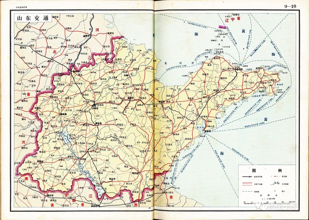 上世纪60-70年代,各省相继出版了自己的省级地图。1964年,山东出版了第一代省级地图集,这个图集相比同年代其他图来说,地形信息略显简陋,但是地名要素还是足够丰富,再加上1964年,山东省行政区划和今天还有一些差别,不论是省界还是地级县级区划,这部图集具有很强的时代意义。