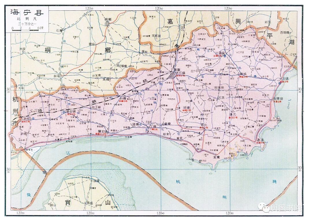海宁扼守杭州湾咽喉,是重要的观潮地带。这里也是海岸线变化比较大的地方,更多内容可以戳链接:舆图鉴赏——什么是钱塘江
