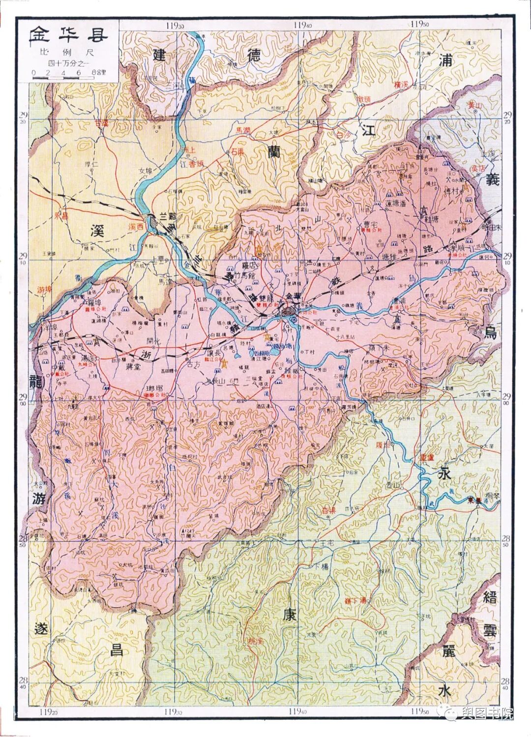 金华专区大致相当于今天的金华市,衢州市全境和杭州、丽水市的一部分。