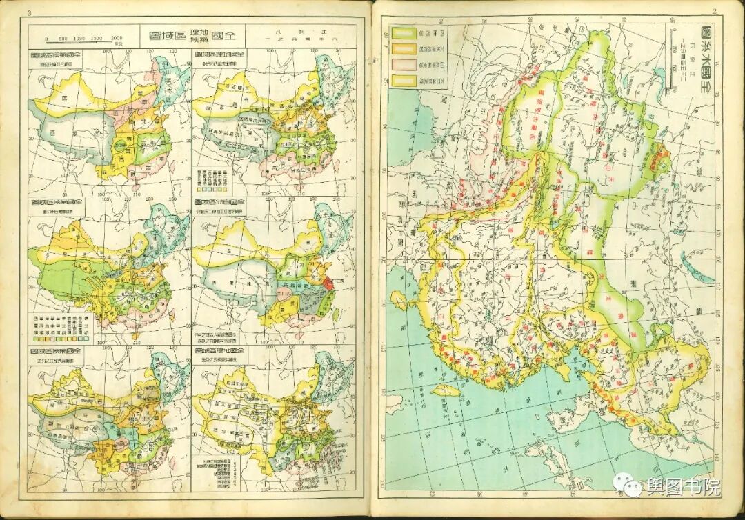 这幅图展示了多种自然区划划分方法,这也是非常难得的。当时是一个特殊的“百花齐放”的年代,虽然看起来凌乱,但是比后期统一标准单独视角的单一标准来说,有了更多的思考创造空间。流域区域划分,和今天大致相同,最大的不同是,呼伦湖,在之前一直视为内陆湖(实际上今天也是内陆湖),但是后来的地图却常常化为外流区。其他内六区的划定和今天也略有不同,但是总体上一致。另外,当时地图,滦河流域常常单列,今天地图往往和海河一起“打包”了。