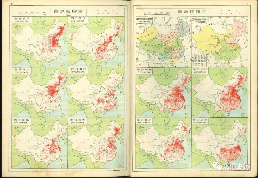 仔细看上图,这个制图非常精细,各种农作物经过细致的普查工作,逐一计算重心点,然后地图上成千上万个点点上去,成图。这在手工时代,堪称典范。