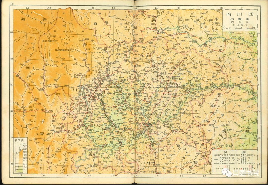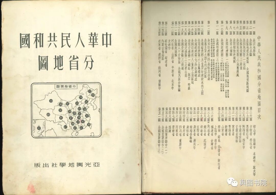 通过扉页可以看出,这幅地图出版发行机构是亚光舆地学社。亚光是由金氏兄弟三人于1938年在上海创办的一家私人地图机构,1941年上海租借被日军占领后,出版社辗转四个多月迁至四川重庆,1942年秋与顾颉刚合作,共同在四川北碚创建 "中国史地图表编纂社",与"亚光"的编辑业务相辅相成。抗战胜利后迁回上海,亚光地图较快发展,地图产品也出了很多,供应地图很受市场欢迎,一直到1954年与其他地图出版机构公私合营成立地图出版社,存在了16个春秋。亚光系列地图,在当时地图中,算质量和制图比较好的,后期地图出版社的分省地图,也基本上继承了这一优良的制图传统。