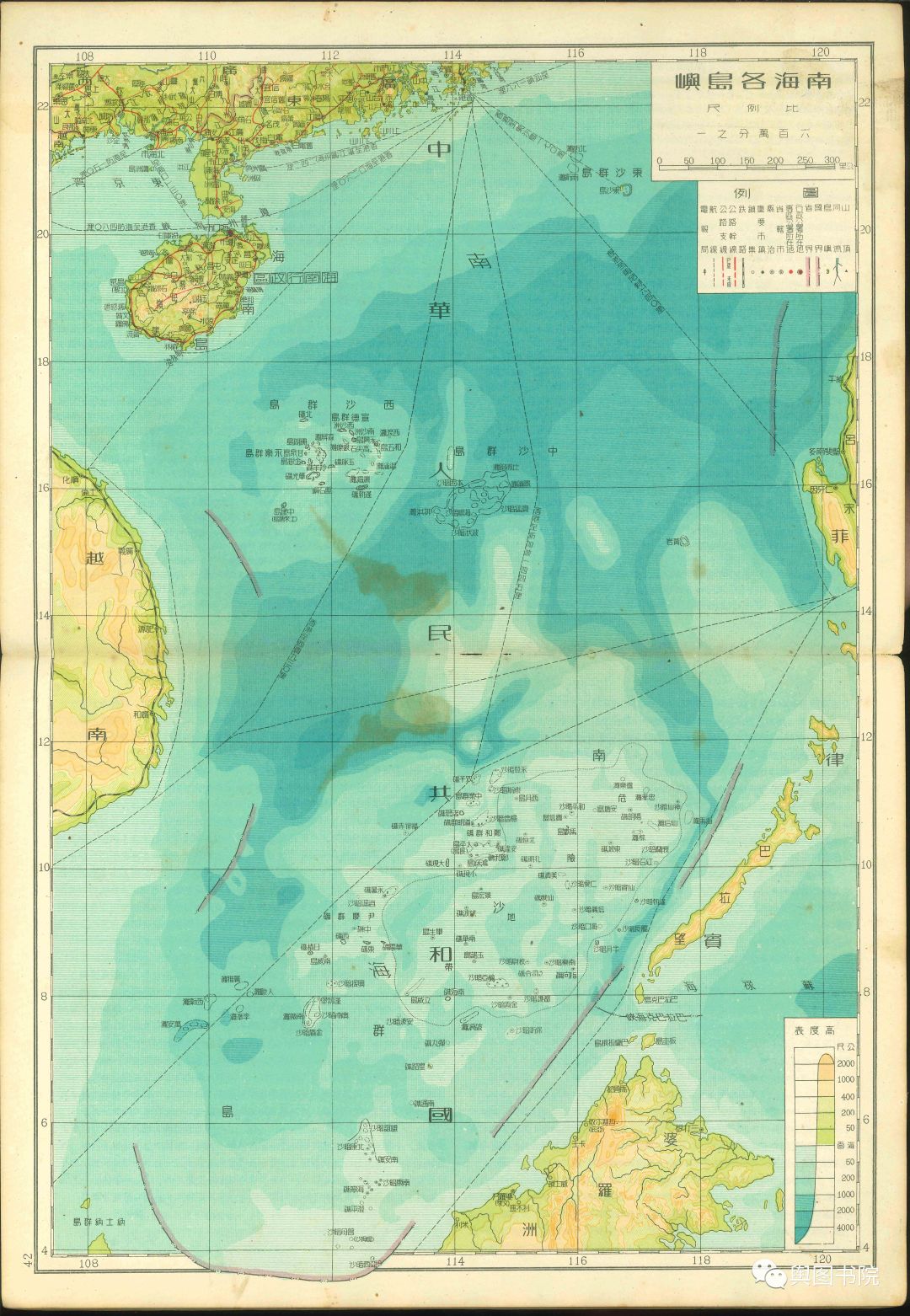 在当时的地图,南海可谓是拥有绝对地位。从幅面占比看,占有一整个幅面。相比之下,北京天津河北山西平原等省市,才占据一个幅面。由此可见,南海在当时是非常重视的。在之后的地图上,南海都没有这幅图这么大的比重。