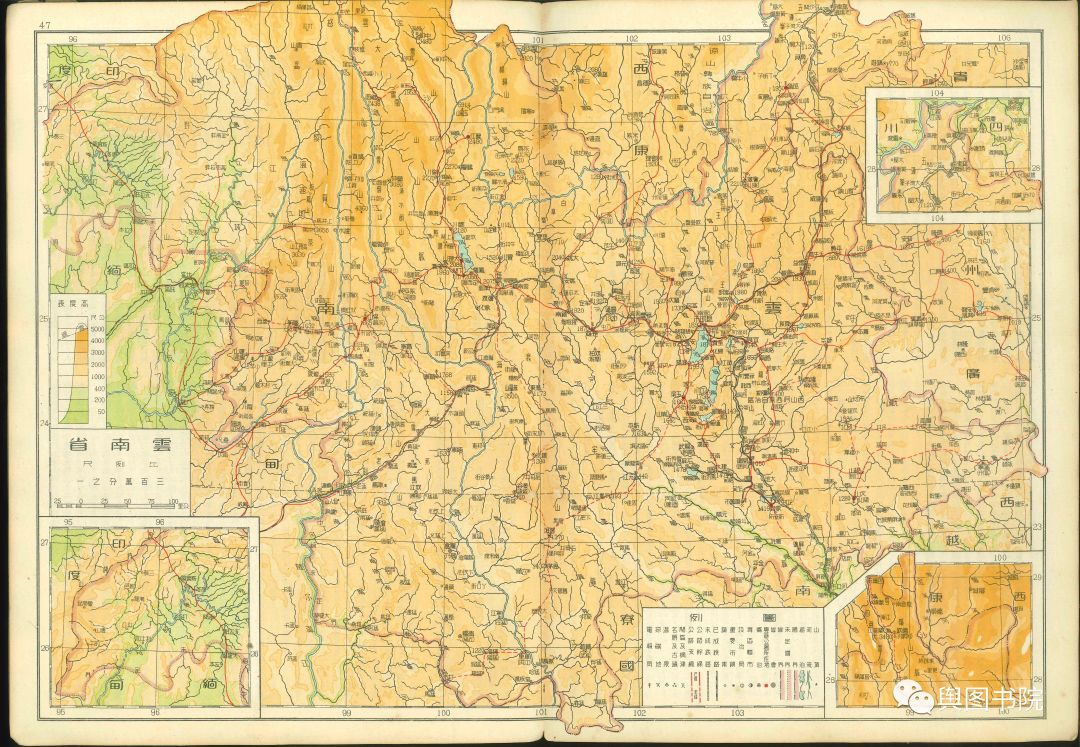 云南省和今天也有一定区别,主要是当时尚未划定国界,采用一些旧的习惯画法,不表示实际控制。云南在当时也比较落后,建制市只有昆明市,下关市,河口市三个(而除了省会昆明,剩下两个市今天也不复存在了)。云南有铁路,但不通内地,而是通过滇越铁路通往越南。