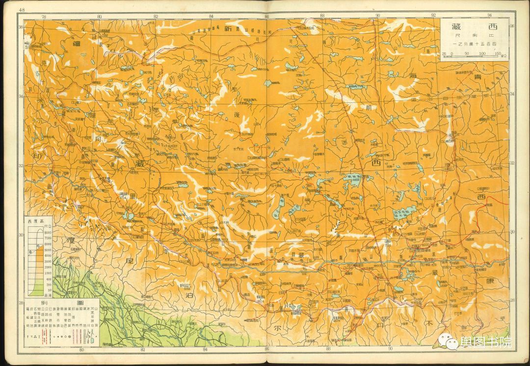 西藏在当时地图上,只示意西藏,不做专名后缀标注。当时西藏刚刚解放,相关工作仍然在筹备中。图中可以看到珠峰海拔高程是8900米,比今天要高。当时西藏地名是比较汉化的,水系中,后缀都是江河湖等。而今天,采用了许多藏区音译做后缀,例如在康巴藏区和安多藏区江河叫“曲”,卫藏区江河叫“藏布”等。