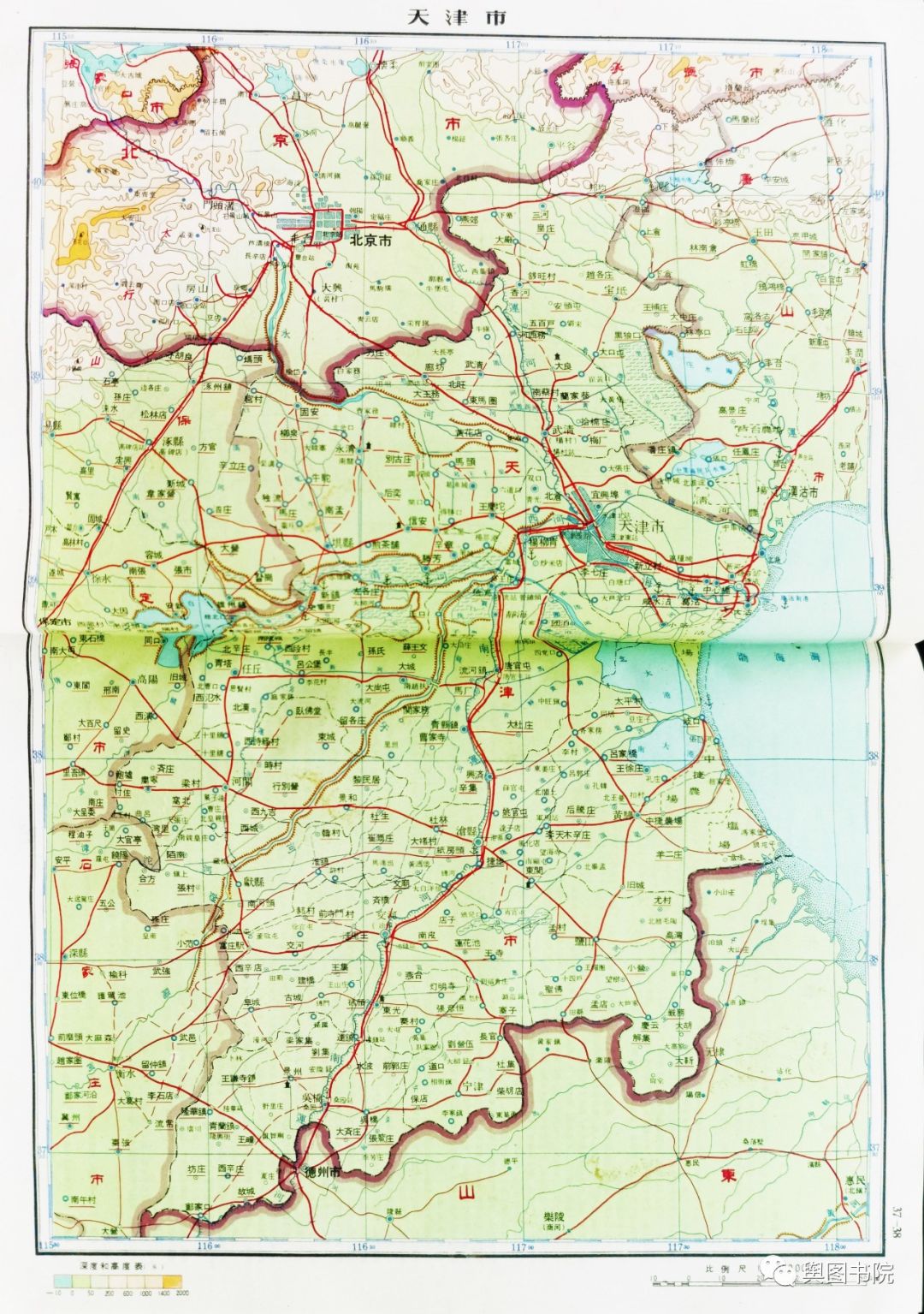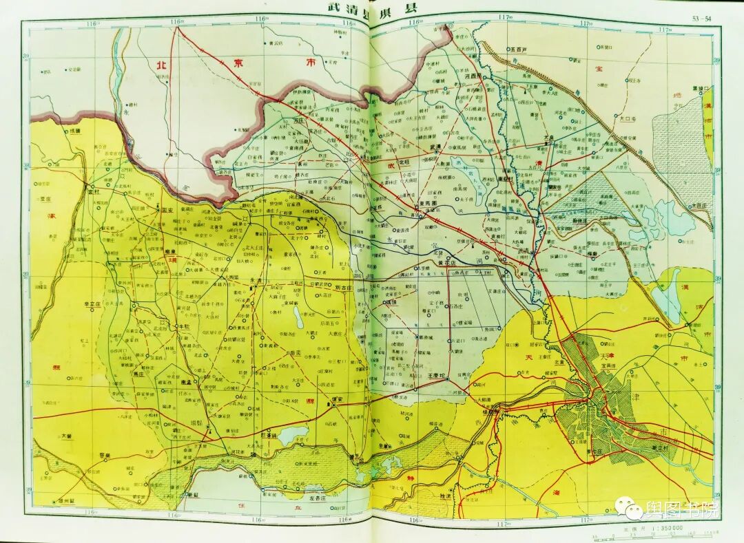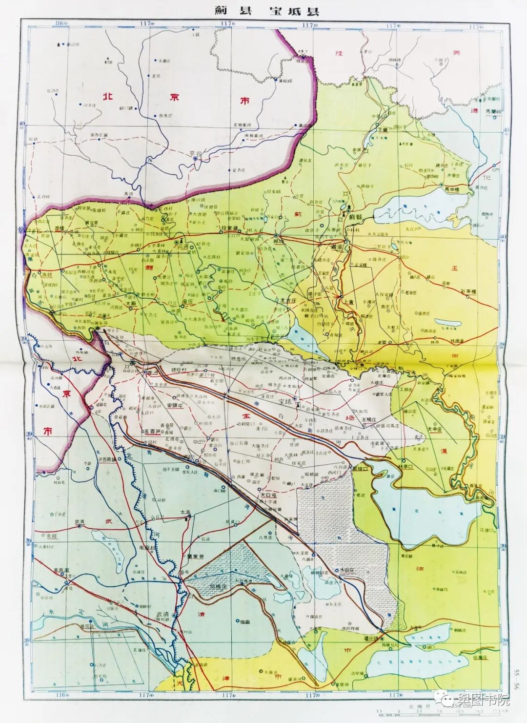 图中的武清县同样比今天大许多,1958年合并了安次县,香河县两个县,这两个县今天都是廊坊市地盘,武清县现为天津市武清区。坝县实际上是霸县,写作坝是当时简化的写法,坝县合并了固安县,永清县二县,今天县境均属于廊坊市。
