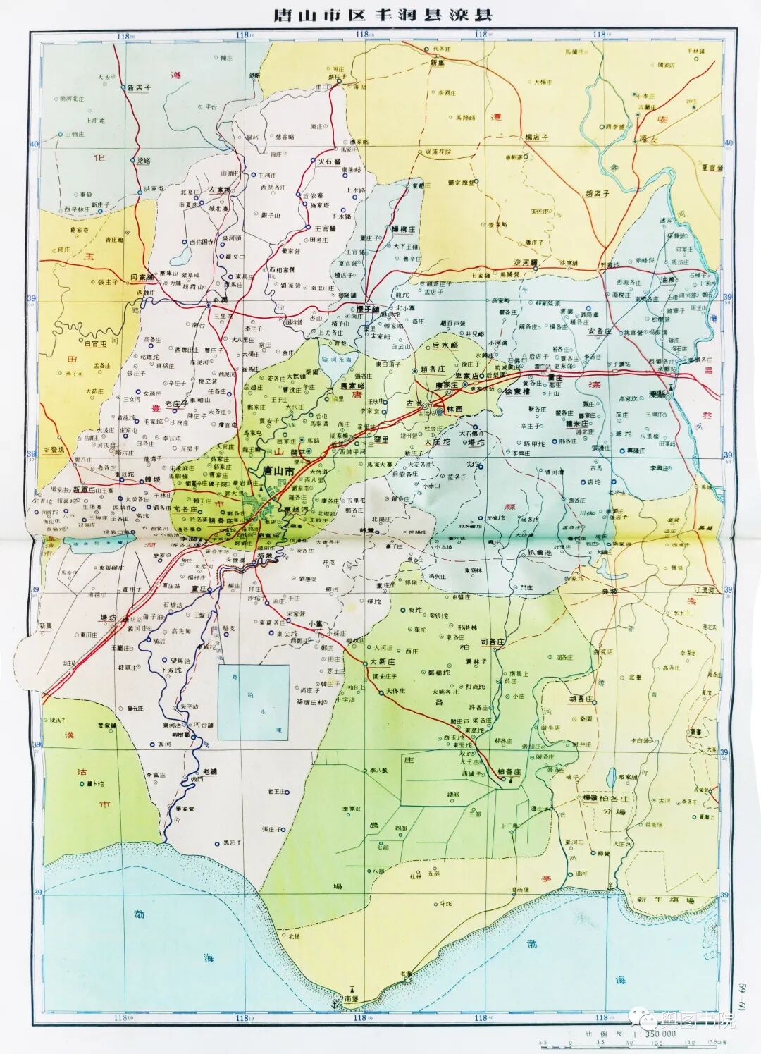 唐山在1960年时候人口已经接近百万,是河北最重要工业城市之一。丰润县,滦县一度并入唐山市,作为唐山市市辖区,但是1960年又划出,形成图中格局。